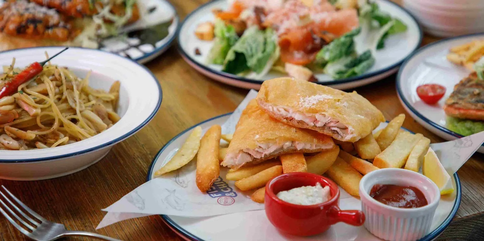 呢間英式小店主打炸魚薯條同烤雞,魚類選擇幾多,有格陵蘭島大比目魚、紐西蘭石頭魚同冰島黑線鱈魚,全部都炸到外脆內嫩,重點係完全唔油膩,配埋香脆薯條真係好有英倫feel。佢哋嘅原味烤雞都好出色,雞皮脆卜卜!而炸雞扒配薯蓉加芝士亦係人氣之選。想多啲選擇嘅話可以叫埋滋味海鮮籃,入面有炸魷魚、魚手指、鮮蝦、魚件同蟹球,份量十足!