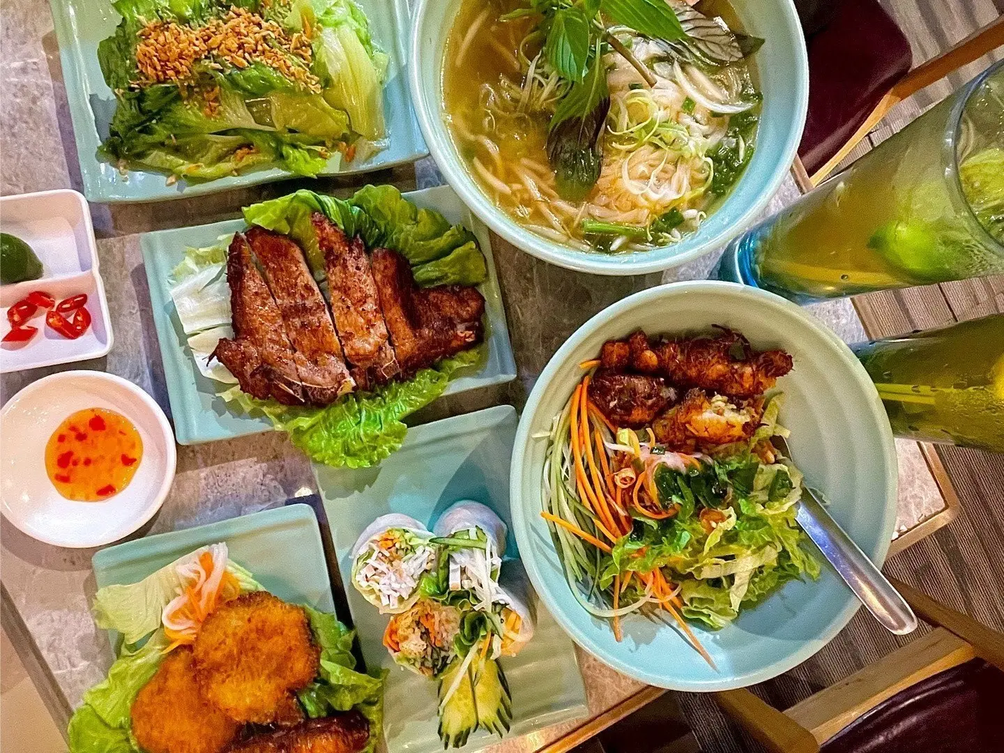 主打正宗北越口味,佢哋嘅河內綜合牛肉湯河超抵食,一碗入面有生牛肉、牛腩片同牛丸,湯底清甜有牛香,食落滿足感爆棚。想食飯類嘅話,老街香茅豬頸肉煎蛋飯就係首選,豬頸肉燒得香口又juicy,配上煎到半熟嘅雞蛋同白飯,簡簡單單已經好好食,同場仲有撈檬系列同米紙卷系列等。小食拼盤就幾抵食,包晒春卷、炸蝦餅、香茅豬扒、香茅雞翼同米紙卷,一班人share必點。