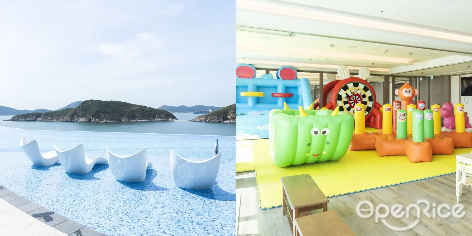 嚟度假放鬆,又點可以錯過60米特大嘅室外無邊際泳池!Infinity Pool飽覽一望無際嘅海景,除咗游水外仲可以曬日光浴,夠晒Chill~酒店主打親子路線,除咗水上玩樂設施,仲有最近新開張嘅童樂天地、彈跳樂園,住客可以免費入場,啱晒家長帶小朋友嚟放電。