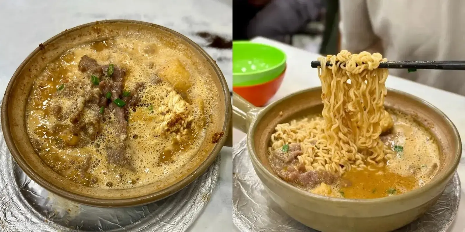 沙嗲牛肉煲仔麵可以話係鎮店之寶,用瓦煲上枱熱辣辣好有儀式感~沙嗲湯底香濃帶花生味,牛肉片分量多又夠嫩,仲有豆卜吸晒湯汁,公仔麵偏硬身,掛汁一流,愈食愈惹味。雖然後段會煲到湯底會變得濃稠啲,但鹹香十足啱晒重口味嘅朋友!