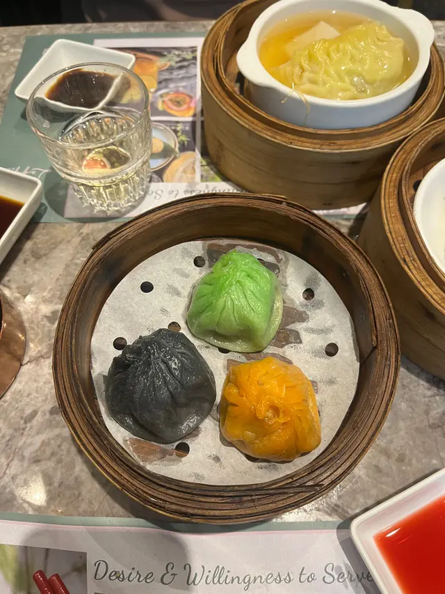 平時lunchtime 時間真的等不了這家店,總是太多人排隊,除了旅客喜歡外,也有不少本地街坊支持,這裡的點心好多選擇,連茶都有一大壺不同味道的茶,優惠時段再有88折,真的太吸引!🟣絕配套餐如果和同事或朋友一起來的話,點一份絕配套餐加點心超幸福!這次我們吃的飯是原隻!原隻!花鷼蛋白臘腸蒸紅花蟹飯配椰子燉烏雞湯,椰子燉雞湯底清甜滋潤,湯頭雞肉依然嫩嫩的,兩個人剛好一人一大碗~等飯的時候雖然等了好一段時間,但上桌一刻真的是‘咩都抵返曬!’原來這個蒸蟹是即叫即做,把大大隻紅花蟹蒸熟確實需要一點時間,而且裡面還有大大條很有鹹香的臘腸和滑溜的蛋白,蟹肉非~~常鮮甜,我們一邊吃一邊說,這真的太划算,而且好滿足呀!!!!!🟣芝麻蝦多士蝦多士每一件都好大件,上面鋪滿芝麻增加風味,咬一口特別香脆完全不掛油,沾一下酸酸甜甜的醬汁更滋味🥰🟣蟹籽燒賣必須要熱吃!因為它放涼了入口依然很輕甜多汁,不會很難咬,能夠一口吃掉味道更豐富呢。🟣荔枝蝦球賣相好精緻的這道點心外層香脆帶濃郁荔枝味,這份天然的果甜和裡面超足料的蝦肉組合在一起很有獨特性。🟣三色小籠包這個大小絕對要叫大籠包😂三款味道都很鮮明,黑松露鹹香突出,紅色的帶辣很開胃,裡面很多湯汁~🟣薄荷青檸梳打天氣熱想冰涼一點,這裡也有多款特飲,這杯特別冰爽解熱,整體不會太甜,配點心也很合適。…查看更多