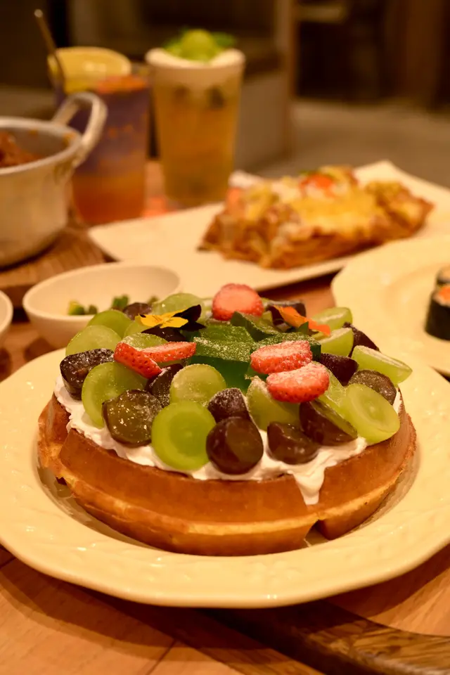 🍝啖啖蟹肉千層麵 ($128)千層麵好澎湃,滿滿蟹肉蟹黃😍好有鮮味,千層麵醬汁用咗肉醬,再配埋啲蟹黃蟹肉一齊食,層次感好豐富🥰而且千層麵煙煙韌韌,口感幾好☺️🦀明太子蟹肉飯卷 ($88)呢款飯卷有八件,飯卷上面鋪滿明太子沙律醬、蟹籽同蟹肉,好吸引!味道鮮甜,整體配搭都好夾🥰🍲韓油奶油排骨鍋 ($185)呢款韓式排骨鍋好豐富,一鍋入邊有好多排骨,多到食唔晒🤣每一件都係啖啖肉,而且好易咬☺️再配上韓式醬汁,會辣辣地嘅感覺,大辣嘅程度可以接受,好惹味☺️🍇值得一提芬芳提子窩夫 ($148)窩夫外脆內軟,口感食落慢慢變煙韌☺️再配上大量嘅草莓、香印提子同巨峰提子,果味十足🥰而且粒粒都好鮮甜👍🏻🍹帶點驚喜的香印提子奶蓋綠茶 ($62)茶底幾濃嘅一杯奶蓋綠茶🥰保留到茶嘅原有口感,而且帶有少少香印提子嘅果香味,再配搭埋奶蓋,成個感覺好襯🤣清新得嚟又有茶底嘅最後回甘☺️濟州柑橘乳酸梳打 $48呢款飲品顏色好吸睛🤩飲落酸酸甜甜好開胃☺️…查看更多