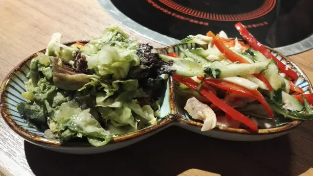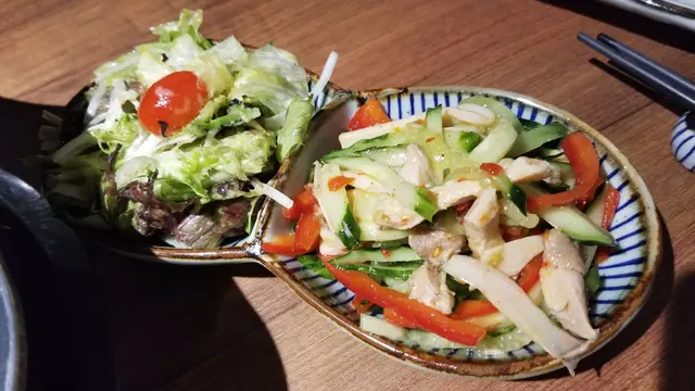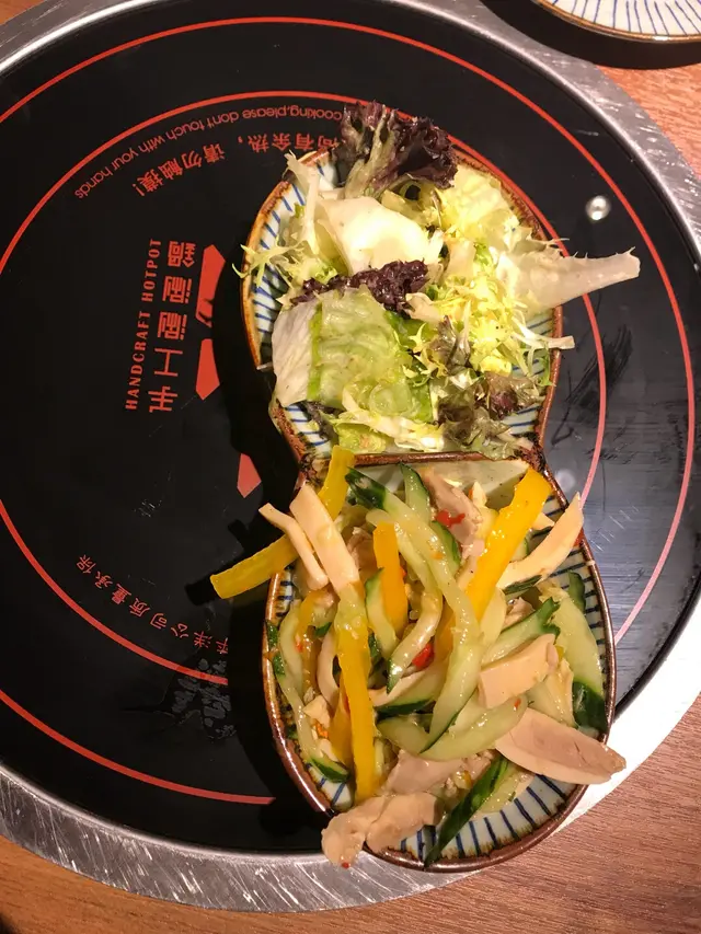 上星期跟友人飯聚時,曾說下次就到這家火鍋店用饍,想不到沒幾天便成事。昨晚6:45到場時,店內沒多少顧客,友人更早到場取了在窗邊的位置,邊吃飯邊看外旺角晚間的繁華景象,也是一件樂事。店內採用套餐形式,按人頭收費,基本上大部分菜單是已擬定好的,選擇性不高。而且分量也是按人頭計算。前菜:柚子沙律是用柚子汁拌生菜,很清新而且味道也配;涼拌蟲草花口感很爽脆,麻油味很香,很好吃