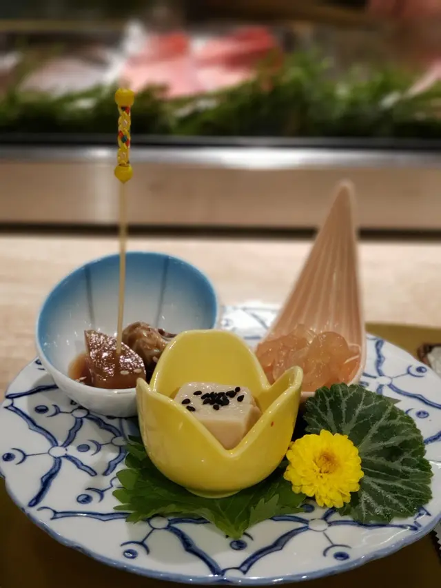 今日係特別的日子!某人預備左特別的驚喜比我,就係帶左我去食「OMAKASE」即是廚師發辦。廚師發辦是由師傅為你挑選最優質、最時令的食材,也是日本料理的最高境界。某人聼左好多朋友的推薦先帶我過黎品嘗!我們點了兩個金鮨級別的OMAKASE。師傅是先會詢問我地有咩唔食/有無食物敏感,十分貼心 !金鮨Omakase $1580/位。廚師發辦包括: 前菜,刺身(8款),壽司(6件),和食,湯和甜品。前菜包括:炸野菜薯餅,面豉豆腐配三文魚子以及酸汁車厘茄。前菜擺設美觀,都是較為開胃的小菜。三文魚子鮮甜與面豉豆腐互相配合。另外我很喜歡這個酸汁車厘茄!酸甜酸甜的,很開胃。八款刺身包括:左口魚、北海道真蠔、海鰻bb配章魚吸盤、太刀魚、鮟鱇魚、白蝦、黃金三文魚子配鹹水海膽、拖羅及鮫魚。左口魚:是日本經典的白身魚,肉質結實、爽口甘香。本身魚味道較為清,食用時蘸少少酸汁,令胃口大增 。北海道真蠔:雖然Size不大,但肉質肥美,口感較Creamy。配上青檸汁令鮮甜味更為突出。海鰻bb配章魚吸盤:海鰻BB口感爽滑!配上冷麵汁更能提升其鮮味。章魚吸盤撒上明太子粉,不用點醬油已經能將鮮味引出!太刀魚:鹽燒後的太刀魚肉質柔軟,配上薑蓉可辟腥。不得不提!師傅在燒太刀魚前加入了天然的岩鹽,令魚的鮮味提升不少。鮟鱇魚:一月至二月正是吃鮟鱇魚德最佳時節。鮟鱇魚肝軟綿香醇,入口沒有半點腥味,師傅配上酸甜的醬汁及海帶可減低肝臟的膩感。白蝦、黃金三文魚子配鹹水海膽:師傅先同白蝦鋪底,然後再加入黃金三文魚子,最後加入鹹水海膽。非常鮮甜,筆墨盡難形容。最後就是拖羅刺身及鮫魚,拖羅的位置是包著心臟的部位,味道較滑而且比起其他部位更位濃郁。鮫魚:肉質潔白,口感柔韌有嚼勁,味道鮮甜。接著就是壽司其中包括:鮫魚、針魚、帶子、野生油甘魚、三文魚子海膽、深海池魚和火炙拖羅根。鮫魚:口感柔韌鮮甜,師傅於壽司内夾著紫蘇令整體味道更有層次。帶子:厚切的帶子質感爽脆又有彈性,師傅配上韓式辣醬新奇有趣!但卻出奇地夾。野生油甘魚:野生油甘魚比平時的油甘魚肉 質更為肥美,入口滑溜柔軟 , 油潤得來有著濃郁鮮甜的魚味。針魚:外表有點銀光閃閃的感覺,但針魚味道鮮甜,而且清新不膩!令人一試上癮。三文魚子海膽:粒粒晶瑩通透的三文魚子同海膽鋪滿整個壽司,一口放入!鮮美到非筆墨能形容。坐在席前欣賞師傅的手藝也是一種極至的享受。火炙拖羅根:全晚令我最形象深刻的一道菜!首先拖羅根經過火炙油香不斷滲出。羅根入口即化,油脂的甘香充斥著口腔。和食:天婦羅食得多!鮑魚天婦羅真係第一次食,鮑魚食落去鮮味十足又軟腍。鱲魚湯:魚湯鮮美醇正,味道濃郁,湯呈帶少少啡的奶白色!加上葱花和豆腐令到整提更有口感。最後就是甜品來作這餐飯的結尾!我亦都要多謝某人精心的挑選我先可以食到咁高質的OMAKASE,整體很完美!而且用餐的時候能深深體驗到師傅用心的烹調,以及他們對用料的執著!希望之後依然有機會再來品嘗OMAKASE。…查看更多