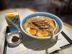 今日小編去完九展睇到場show緊係要醫飽個肚啦🥴,咁耐無黎到九展原來二樓開左Food Court,有勁多唔同菜式既餐廳選擇,既然有得揀就緊係揀間自己有心水架啦🤔。而有間門面好靚,又有日系風格既裝修吸引到我入去👀,而呢間餐廳就叫「鳴日の食堂」。✦✦✦✦✦✦✦✦✦✦✦✦✦✦🎈A3.特盛天皇脆雞御膳 (法式松露醬) $84脆雞一上檯既時候有啲嚇親,因為落放超大份🤯,有兩塊超巨型雞扒,兩塊加埋仲大過塊面添呀,然後仲跟一碗麵豉湯同埋一碟螺肉。重點脆雞閎炸粉落得比較少,唔會咬落去有好粉既感覺🍗,兩塊雞扒既肉質咬落去仲會咇啲汁出嚟,好juice呀💦。餐廳用既法式松露醬比較偏向果甜味,少左松露醬獨有既味道,麵豉湯飲落味道啱啱好,螺肉大粒好有𡁻口。✦✦✦✦✦✦✦✦✦✦✦✦✦✦🎈B6.匠魂東坡煮黑蒜油拉麵 $87上檯已經吸到好濃郁既黑蒜油味🍜,越聞越有胃口,超香超吸引。另外有好多荀片、黑木耳,最重要係有大大塊既東坡肉🥩,肥瘦適中,就連佢既皮仲吸收晒啲黑蒜油味添。✦✦✦✦✦✦✦✦✦✦✦✦✦✦🎈B15.秘製辛辣豚骨叉燒拉麵(特盛) $86講到食拉麵就一定要有日式叉燒🍜,餐廳既叉燒口感同味道係可以接受內,仲要有成五塊咁多,塊塊都好大添。另外,仲有溫泉蛋一隻🥚,出面通常都係得半隻,小編就比較鍾意食溫泉蛋,因為一咬落去係有流心既感覺呀。而拉麵既軟硬度只有一款,小編覺得口感適中,好啱口味。佢哋係將辣調味分開放架😌,咁就可以因應自己想食既辣度加落碗拉麵,我覺得咁就唔洗怕太辣而食唔哂啦🤭。✦✦✦✦✦✦✦✦✦✦✦✦✦✦總結:係午餐時段有好多打工仔嚟幫襯,非常受眾。而室內環境、燈光都令人坐得舒適😌,餐廳既門口亦擺放左兩個人仔可以拎嚟打卡架📸。不過餐廳就冇提供生食刺身,主要以熟食為主🥘,價錢都算平民 ,且不收加一,如果你地嚟到九展睇完展覽就記得去Food Court搵下呢一間餐廳喇👀。✦✦✦✦✦✦✦✦✦✦✦✦✦✦ …查看更多