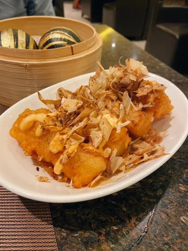 鮑魚燒賣不知是誰想出來的小奢華點心,應該如何進食?看似強行加上的鮑魚,應該是跟燒賣分開吃吧😆黑金流沙包一撕開便是澎湃流心奶皇餡,而且甜度適中,有淡淡蛋黃香。古法陳皮牛肉球有微微陳皮香氣,熟得剛好的牛肉軟嫩多汁吃點心怎少得了蝦餃?筍尖蝦餃皇的晶瑩外皮包裹著大大粒蝦肉,筍絲豐富了口感。魚肚滑雞扎挺足料,魚肚充滿湯汁,芋頭略嫌乾身了一點千島醬脆炸蘿蔔糕,賣相很日式,熱辣辣的蘿蔔糕吃起上來外皮脆卜卜,內裏軟綿綿,加上千島醬和木魚碎令人想起章魚燒呢😍經典糯米雞 原來很大件,吃起來荷葉味頗重,挺有風味的糯米雞👌…查看更多