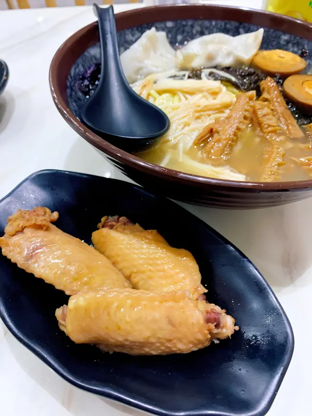 落雨濕濕想食濃味嘢,如果在中上環的話,多數會揀呢間。因為它除了車仔麵有好多餸的選擇外,湯底方面有少有的麻辣和水煮。*水煮魚配上湯米線*。賣相不俗,魚肉份量十足而且非常嫩滑又無骨,雖然小辣都幾辣,但因為上湯米線是分開上的,所以可以按自己口味添加適量的水煮辣湯。$69吃得很滿足。*麻辣鴨血*。表面看和水煮魚好相近,但這個加了蒜蓉,把滑溜的鴨血和蒜蓉一同放入口,非常惹味。*車仔麵加麻辣汁*。先喝一口湯時覺得湯底略鹹,但拌勻後再試就吃到花椒的香味,加上餸和麵後就不覺鹹了。其中極品牛腩條必食,軟腍得來有牛肉味;黑松露雞肉水餃也很好吃,不過只得一隻有點孤寒;反而金錢肚最抵食,份量不少。*醉雞翼*和*咖哩魚蛋豬皮雙拼*味道普通,可以再「醉」點和再「咖哩」一點,要吃小食的話還是推薦麻辣鴨血。店內光猛乾淨,員工有禮,想食濃味辣味的可以試下,至少食完不會口渴。…查看更多