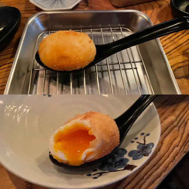 特別推薦大家✅天使蝦 Angel Prawn✅北海道帶子串 Scallop✅半熟煮玉子 Half-Cooked Egg✅雞胸軟骨 Chicken Breast Soft Bone✅高湯雞蛋卷 Egg & Broth Roll✅燒飯糰(醬油) Grilled Onigiri✅炸雪糕蛋糕卷 Fried Ice Cream Cake《天使蝦》必食😍😍,肉質彈牙🦐,炸粉完全唔厚、唔油,可以食埋蝦頭蝦尾,好脆,有蝦膏味好正😆💰$39《北海道帶子串》帶子新鮮,有鮮甜味🐚💰$39《半熟煮玉子》外脆內軟,好流心、好滑🥚,加少少海鹽🤏🏻,好食ahh😙💰$24《雞胸軟骨》一層雞胸一層軟骨🐥,軟骨係骨片嗰隻🦴,口感好好,yum👍🏻💰$25《高湯雞蛋卷》超級嫩滑🥚🍳,非常熱辣辣🔥,好juicy,高湯雞蛋卷會比玉子燒簿身d,就算好飽都想食晒佢😂💰$47《燒飯糰(醬油)》熱辣辣嘅燒飯糰真係好好食🍙,用上珍珠米,燒到金黃色🍘,入面仲有海帶做餡料,飯糰好夠味😋💰$23《炸雪糕蛋糕卷》🔥外熱內凍🧊,有d蛋糕黐住,入面嘅雲呢拿雪糕夠晒雪🍨,咬落去仲好完整💰$26*有Lunch Set架😆,聽講好抵食😈**一開始會有椰菜,可以配合埋蒜蓉醬一齊食,用嚟解膩又冇咁熱氣✌🏻***要講一講佢個白魚💰$48,味道係似松子魚,估唔到佢係咁整😛…查看更多