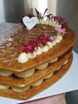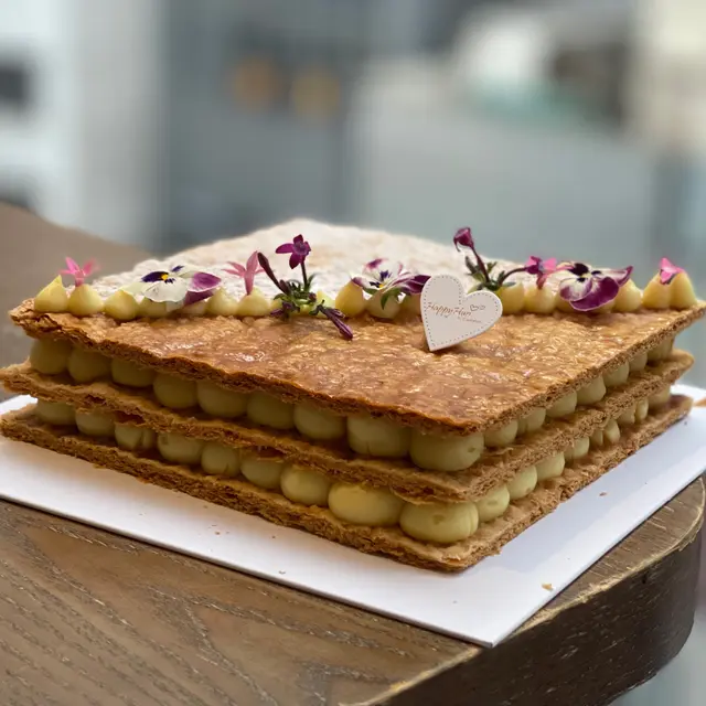元宵節快樂🏮!低調嘅我喺呢日收到蛋糕確係好開心,其實我一向就無特別偏愛拿破崙,但來自「HappyHun by Dandelion」嘅出品真係令我喜出望外,一食愛上。朋友喺黃竹坑返工,佢食過同事嘅散水餅後,覺得小店嘅拿破崙好出色,於是就好想同我分享☺️。友人特意提前預訂,店家會好精準問埋取餅時間,因為佢想將拿破崙喺最佳時間送到客人手中!原味吉士海鹽焦糖拿破崙($420),拿破崙嘅形狀原來有得揀,最典型係心形❤️或者正方形🟥,但想要其他款式同口味的話都可以同店家再傾。正方形嘅尺寸有成6.5吋乘6.5吋,份量超大,三層酥皮夾住兩層吉士醬,足夠成家人食有餘。越多人一齊食越好啊,因為店家叮囑唔好擺過夜。平日我唔好食酥皮係因為好多時食到嘅都唔脆,仲要好油笠笠,但呢個拿破崙絕對能夠改變我一直以來嘅印象。基本上一打開餅盒,陣牛油香味經已撲鼻而來😍。酥皮層看似薄薄的,但一咬落去你會發現係有勁多層,口感超鬆脆,無得彈😋,唔通呢個就係傳說中所講嘅Mille-feuilles!吉士醬好好味,但對於我來講有少少多,不過我知係拿破崙嘅特色嚟,唔多又會覺得唔夠喉,好鬼矛盾🙈。海鹽焦糖味道簡簡單單,易入口,相信冇人會唔鍾意食,而且整體唔會過甜,啱啱好。題外話,面頭嗰啲係食用花,可以食埋👌。店家知道好多時買蛋糕都係為咗表達心意🎉,所以佢哋提供埋一塊大曲奇以供印字。我望見Love Shinchan就覺得好幸福了😘😘😘。總括嚟講,呢個拿破崙確係能夠帶比人快樂美滿嘅感覺💕,除咗心意外,味道本身亦真係好好🤤,唔係得個靚字。如果鍾意食拿破崙的話,千奇唔好錯過。就算唔鍾意食,你都值得俾多次機會自己,試下呢度嘅出品,話唔定你會改觀😏。…查看更多