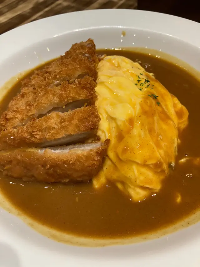 吉列豬扒咖哩蛋包飯,賣相不錯,先試下蛋包咖哩飯,蛋半生仍有蛋汁,配埋咖哩飯都幾好味,咖哩唔會死咸而夠香濃