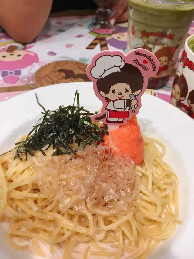 之前上網見到山下菓子做緊monchhichi 主題餐廳,咁啱經過諗住嚟試下,點知已經轉了AP鴨,不過唔緊要我都覺得佢好得意,所以就入去食晚飯順便影下相。看見餐牌上的食物價錢抵吃, 晚上有套餐有散叫,我們點了和風博多明太子意粉$79,加$68追加甜品原味梳乎厘pancake, 豚肉腸咖哩蛋包飯$129,朱古力千層蛋糕連 pitchi果凍$69,香檳巨峰提子泡茶$59。