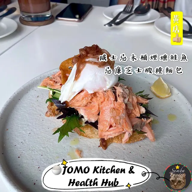 正 餐 甜 品 飲 品 也 滿 意 的 一 頓 🍽記得在她們開業沒多久的時候到訪過一次~食物水準整體都很滿意☺️☺️最近她們增建了蛋糕𝗕𝗮𝗿🍰所以我又再到訪了✨威士忌木桶煙燻鮭魚忌廉芝士酸種麵包 $𝟷𝟷𝟾好大堆頭的包🤣上面啲料疊到成座山咁高!我本身其實唔太中意食煙三文魚 硬係覺得熟嘅三文魚有陣怪味~但呢度嘅三文魚又好食喎🤭而且酸種麵包外脆內軟!讚!𝙹𝚘𝚖𝚘 𝚊𝚕𝚕 𝚍𝚊𝚢 𝚋𝚛𝚎𝚊𝚔𝚏𝚊𝚜𝚝 $𝟷𝟹𝟾港女必叫嘅全日早餐🤫佢地嘅𝚊𝚕𝚕𝚍𝚊𝚢係全素的喔~蔬菜食落好新鮮 菜也是爽脆的!啡菇𝚓𝚞𝚒𝚌𝚢 牛油果也新鮮🥑最驚喜係中間嘅𝚢𝚘𝚐𝚑𝚞𝚛𝚝西米🤣好食之餘又無乜罪惡感✨雖然好吃 不過覺得定價還是稍貴了一點呢~.𝙵𝚘𝚕𝚕𝚘𝚠 𝚑𝚔.𝚏𝚘𝚘𝚍𝚖𝚊𝚙 𝚏𝚘𝚛 𝚖𝚘𝚛𝚎 𝚏𝚘𝚘𝚍🍽.黑芝麻戚風蛋糕 $𝟻𝟸這兒的戚風是招牌~食落真的超鬆軟 而且芝麻香很濃郁面頭的𝚌𝚛𝚎𝚊𝚖也很香滑!熱情果戚風蛋糕 $𝟻𝟸這個戚風感覺比較清香 味道不會太濃烈當然也是鬆軟的~面頭的𝚌𝚛𝚎𝚊𝚖也是超邪惡🤩我就比較喜歡黑芝麻口味 朋友就喜歡這個多點各有所好!糖漬香橙熱情果湯力 $𝟻𝟶消暑一流🍹熱情果味很充足 飲落又冰涼又好喝!濃縮咖啡湯力 $𝟻𝟶店內環境也是很打卡able喔~…查看更多