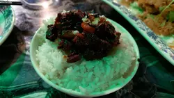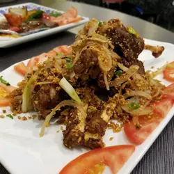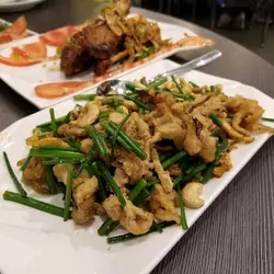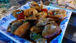 豉椒炒蜆份量好足夠,蜆的大小適中,唔係細細隻的,炒得香,味道同一般的差唔多,唔錯。孜然棒棒骨又係份量夠,大概有5支骨。而味道一般,孜然味唔算勁,有點難咬。生炒骨都係份量充夠,味道同一般食到的差唔多,都幾好食。魯肉飯幾香口的,不會太咸腐乳通菜全晚最遲上枱的一碟,其實都係普通的通菜,炒得有點太油6個人食左約$750,都係百幾蚊一個人,好抵食,仲有大電視睇(所以D相影到五顏六色