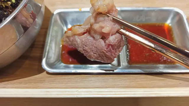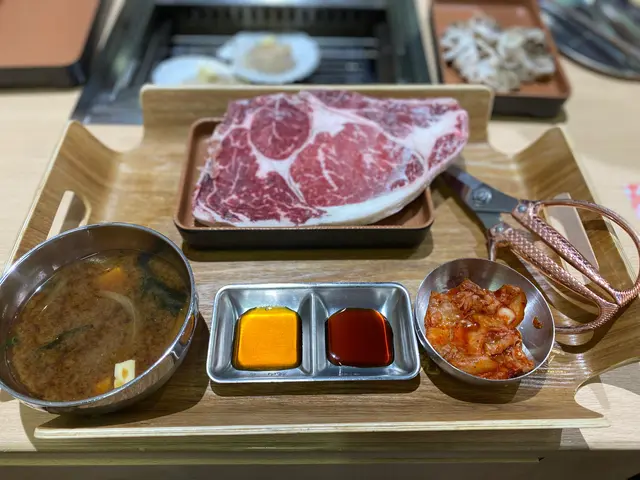 约了外號"燒肉魔王"食友到這日式燒肉食肆探店,到達門外先用food gulu取等座位票,侍應很快安排了座位,點菜就用二維碼,方便快捷👍🏼多款牛,豬,雞肉套餐供選擇,套餐包括白飯,麵豉湯,泡菜或前菜,我們决定分亨三個牛肉套餐 😂安格斯肉眼套餐(150g),一大塊肉眼扒, 厚薄適中,方便燒烤,原件放在烤爐上烘至七八成熟,再剪细件,入口更有味感,伴以熱米飯,肉香更顯😋牛小排套餐(200g), 小排肉薄條切成小件狀,易熟得多,高火快烤,入口油脂味濃,又把米飯升级至紫菜飯益加芳香😋骨付牛肋肉套餐,五件帶骨牛肋肉,微帶脂肪,入口有嚼勁😋决定追加牛舌芯(散點),切成長方條狀牛舌芯,入口軟绵嫩爽😋好記憶的一次"燒肉一餐"👏👏…查看更多