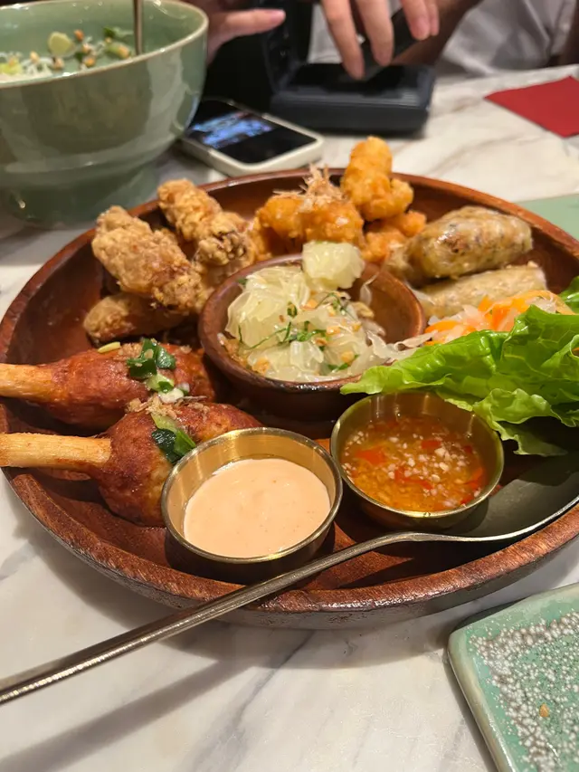 九龍灣偉業街33號德福廣場2期4樓 越南會館整體環境坐得好舒適,服務十分親切假日下午都不用等好耐,算食得好安靜🍛黃咖喱三寶飯味道不錯,但分量偏少,略嫌不夠飽肚;相反撈檬的份量十足,好好好大碗😶 配料豐富,性價比高,值得一試。小食方面,雞翼外脆內嫩,蒜香濃郁 好惹味;小食拼盤中的柚子清新爽口,成功平衡整體味道。整體菜式味道不俗,尤其是小食部分令人印象深刻。不過主食分量方面仍有改善空間,建議點餐時可以留意返選擇。比較適合朋友聚餐或輕鬆晚餐,若能提升主菜份量會更理想。🍛🍗…查看更多