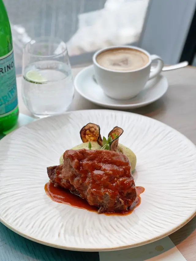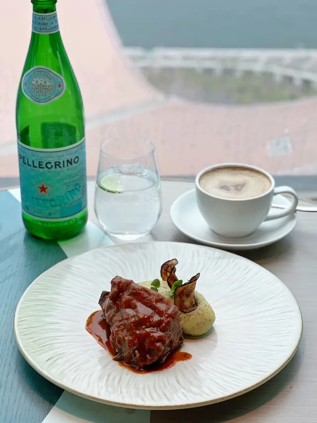 🍽️ Vista週末風車午餐($488/位)有Welcome Food,Starters,Main同Dessert🍽️ Welcome food 有迷你蘑菇湯同一塊Margherita Pizza;蘑菇湯一上枱就已經聞到好香菇菌味,質地濃稠,仲食到頗大粒嘅蘑菇粒,中間放上用麵包粒砌成嘅花形,好飲又好睇;Margherita Pizza係即叫即焗,上面鋪滿芝士,蕃茄醬加上羅勒葉,惹味,餅底薄脆,如果薄餅焗嘅火喉細返小小就更好🍴 Starters可以系9款意式開胃菜入面揀5款,素食同非素食一應俱全,職員將客人選好嘅5道菜放置系彎月形餐盤並砌成風車形狀,希望客人享用美食之餘亦心懷美好嘅盼望祝福🥗 布拉塔芝士配開心果香草醬、櫻桃番茄羅馬生菜苗布拉塔芝士配上酸酸甜甜嘅櫻桃,番茄同爽脆嘅羅馬生菜苗,味道清新🥙 鮪魚醬小牛肉、什錦醃菜蔬菜小牛肉肉質軟嫩,咸香嘅鮪魚醬更加為整道菜提鮮,加上爽脆嘅紅蘿蔔、椰菜花同惹味嘅酸瓜,非常開胃🪿 迷你鵝肝撻、黑櫻桃鵝肝豐腴肥美,入口即化,配上甜度高嘅黑櫻桃,啱啱好平衡左鵝肝嘅肥膩,中間帶有蘑菇粒,撻皮鬆脆,層次豐富🥑 藍鰭吞拿魚、牛油果他他吞拿魚切粒並加上幼滑嘅牛油果同甜酸汁,魚香鮮美同柔軟的口感,層次豐盛,而甜酸汁中和左吞拿魚嘅膩🍴 生帶子薄切、香草油醋、海藻海鹽用咗刺身級嘅生帶子,味道鮮甜,略嫌香草油醋味道太突出搶咗帶子嘅味道🍴 Main🐮 慢煮和牛面頰配松露薯仔蓉及青瓜和牛面頰牛味香濃,用咗慢煮方式烹調,腍身得嚟仍然鎖住肉汁;薯蓉食到香濃嘅松露味,幼滑之餘調味啱啱好🦞 龍蝦意大利飯(+$128)好濃郁嘅龍蝦味,意大利飯好掛汁,粒粒分明,口感偏硬🍰 Dessert 係經典嘅Tiramisu,仲要有成500g特大份量,面頭用可可粉灑左餐廳嘅名,芝士好幼滑而且富有奶香味,口感比較濕潤,咖啡味適中🍸 Teallini($98)用左Peach同Saicho嘅Jasmine sparkling tea調成嘅mocktail,聞落果香味比較重,飲落口味道偏酸🍹 Rossitea($98)用咗Strawberry 同Saicho嘅Hojicha sparkling tea調成嘅mocktail,味道比較清爽🏙️ 餐廳位於北京道1號嘅頂樓,採用左落地大玻璃設計,可以飽覽整個維多利亞港海景,環境氣氛一流,無論係約會定慶祝特別日子又可以多個選擇…查看更多