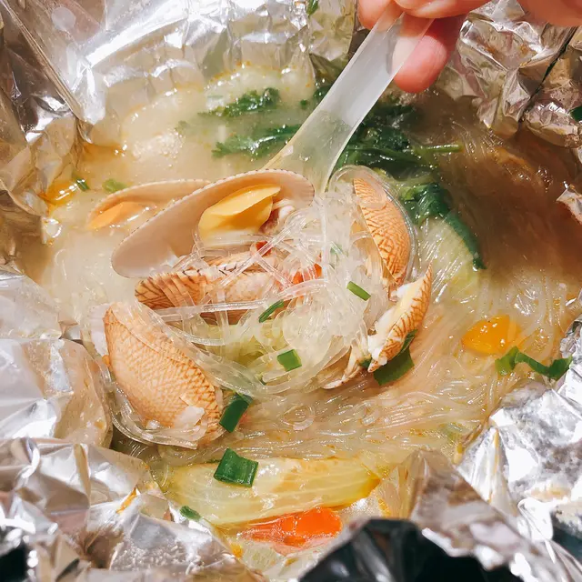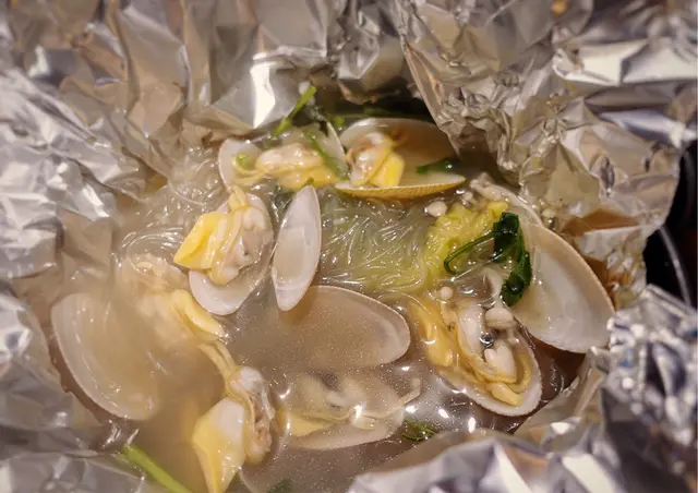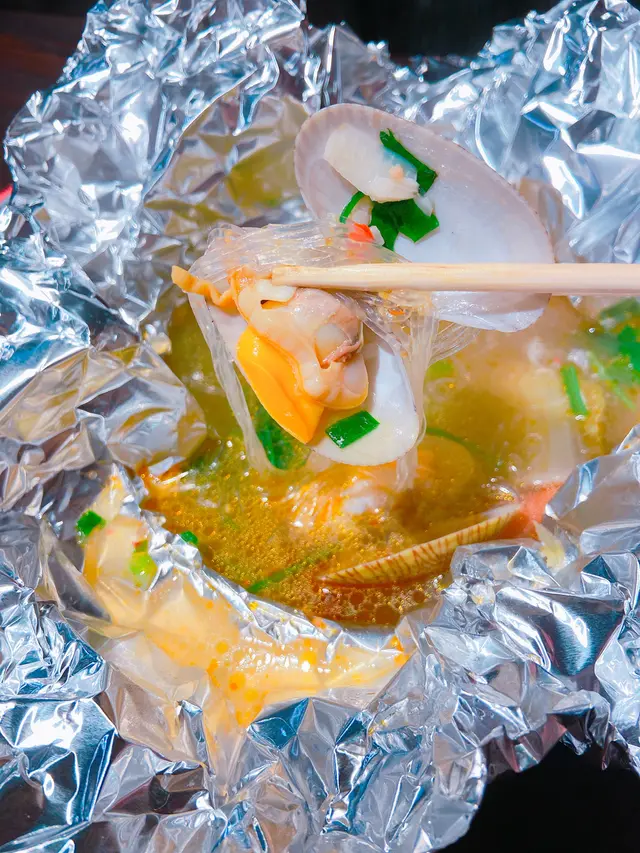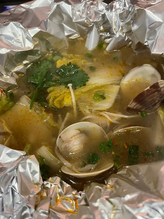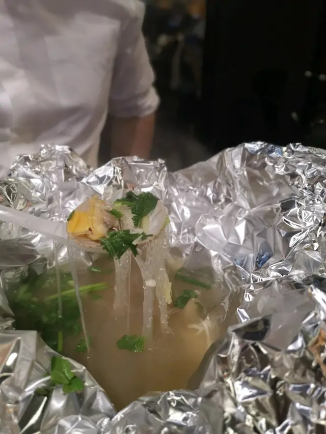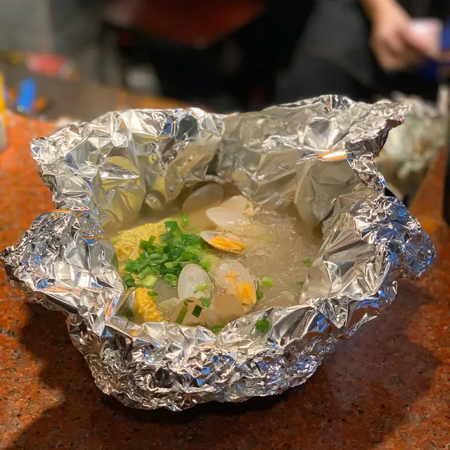 本身食晚餐,等位等咗兩個半鐘變咗宵夜,就係為左食呢個花甲粉😍上枱係用錫紙包住,打開香噴噴,花甲鮮甜肉嫩,完全吸收湯嘅精華,又清甜又有鮮味,粉絲又係另一個絕配😍 一人一兜宵夜都幾正😋除咗花甲份之外,店舖主打串燒,試左燒羊架、鮑魚、雞軟骨都唔錯,羊架外脆內軟仲有肉汁,其他串燒就正常發揮,例如燒燒賣、燒菠蘿、燒雞腎。本身有生蠔$60半打,不過我哋食嘅時候已經賣晒,可惜可惜,唯有下次再嚟睇吓好唔好彩啦!…查看更多