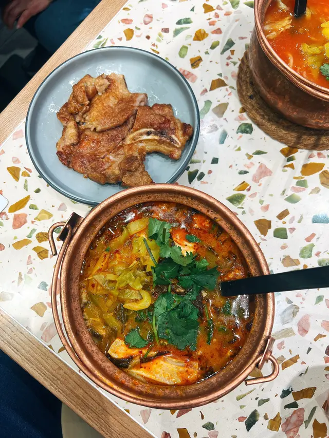 香港人真係好中意食米線‼️其實除咗譚仔同雲桂香依種連鎖餐廳之外,香港地仲有好多用心煮食嘅米線鋪頭,「春城」就係其中一間🥹🥹【招牌豬扒酸酸辣辣銅鍋米線】💰55有別於其他鋪頭,依款米線會用特別嘅銅鍋器皿裝住🥣 湯料好豐富:包括肉碎、芽菜、腐皮、酸菜、甜酸菜、木耳絲😋 豬扒會分別用另一個盤仔上,唔怕浸到淋晒👍🏻【蟲草花椰子雞米線】💰62椰子湯味好重🥥 嗌咗小辣,飲落有啲似喇沙湯底(比較清,唔會有蝦醬鹹味)😋 雞件依舊好滑👍🏻 加8蚊可以轉做雞脾👀 配料有大量蟲草花、紅棗、木耳,個人私心推介💕💕【炸脆脆蝦膠豆卜】💰25/3粒喺其他餐廳無食過嘅小食👀 豆卜外皮炸到金黃酥脆,釀喺入面嘅蝦膠彈牙👍🏻 配泰式辣醬食好夾🤓【爆漿紅糖糍粑】💰20/3粒物如其名、絕對爆漿‼️ 糍粑口感Q彈,紅糖釀喺糯米糰入面係我比較喜愛嘅食法,可以確保包舊糍粑都有足夠嘅甜味同熱度💕幫襯過旺角店同尖沙咀厚福街店,食物質素同樣高質,出品有保證,價錢經濟又實惠👍🏻…查看更多
