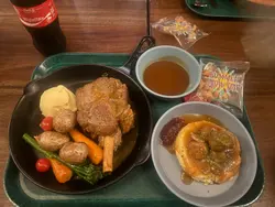 迪士尼張年卡完左喇🥹最後一次喺迪士尼嘅晚餐,居然食咗咁好食,咁出色,性價比咁高嘅野😍真係有驚喜嘅🥹秘製羊膝🐏好嫩滑😍好林😋味道加埋口感好驚喜😆配埋個啤酒汁好夾,一啲羊騷味都無,唔睇餐牌就咁食,未必食得出係羊😂份量好足,一個人食唔哂,嚿羊膝頭咁大😂阿德爾忌廉蘑菇汁肉丸🐖🐂肉丸偏林,咬落去有肉汁,味道調校得幾好,個汁撈埋墊底薯蓉好好味😋如果再有機會去迪士尼,我一定要去Elsa餐廳食依個羊膝🥹推薦🙌🙌🙌❤️喺香港迪士尼食過最好食嘅嘢,個人覺得😂😂😂…查看更多
