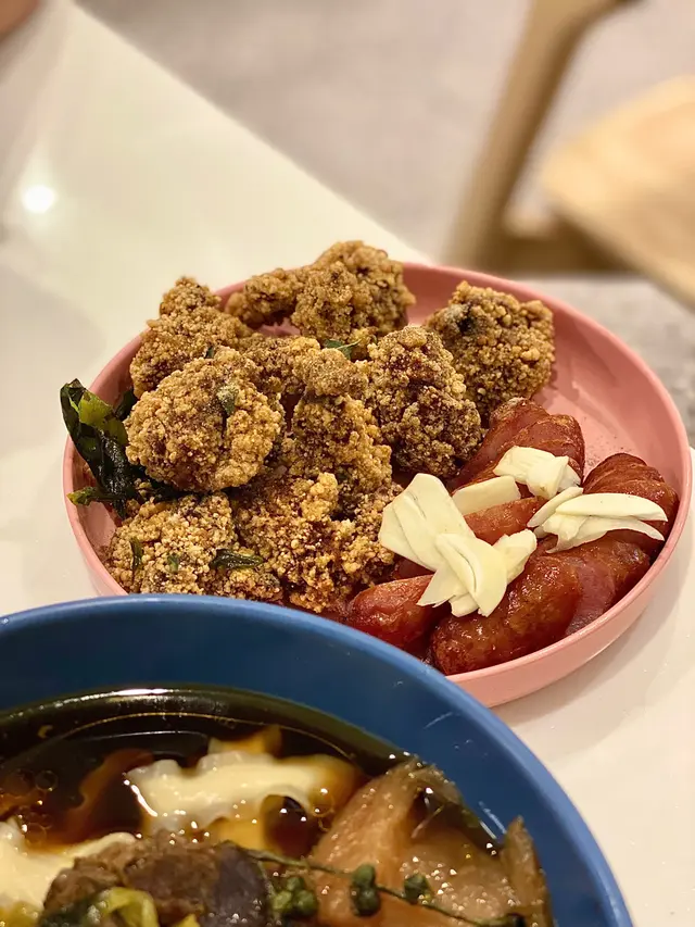 #MC帶你去尖沙咀.K11 Musea除咗過江龍美食、米芝蓮褻餐廳、日韓精緻料理,其實都仲有間位置比較隱世嘅台式餐廳,主打親民價錢台式輕餐、台式茶飲等。➖➖➖➖➖➖➖➖➖➖➖➖➖➖➖➖✨ 饞。台式食堂.餐點主打簡約及價錢親民嘅台式輕餐,更會盡量挑選來自台灣原裝嘅食材及醬料,還原熟悉嘅台灣味道!餐廳裝修簡約,以木系文青嘅小清新風為主。➖➖➖➖➖➖➖➖➖➖➖➖➖➖➖➖🥢 饞三寶–台灣炸滷排骨飯 $59.飯粒用上台灣本地生產嘅蓬萊米,就係為咗貼近台灣原味道!薄薄炸粉嘅滷排骨外層香脆,口感軟嫩,唔會太乾身,而且滷汁甜甜地,味道不錯。➖➖➖➖➖➖➖➖➖➖➖➖➖➖➖➖🥢 半筋半肉麵(四川麻辣)$90.黑色湯底味道極為濃郁帶少少中藥嘅甘醇味,湯底用上台灣高雄岡山辣豆瓣,香濃微辣有後勁,搭配彈牙滑順嘅陽春麵,口感紮實有咀嚼感。牛腩經過6小時配以9種辛香料慢火熬煮,肉質厚身厚切,口感軟腍入味;牛筋超軟稔彈牙,口感一流。➖➖➖➖➖➖➖➖➖➖➖➖➖➖➖➖🥢 最佳拍檔 $68.即係鹽酥雞拼台灣香腸。鹽酥雞用咗無骨雞腿肉加上五香粉等作餣料,肉質嫩滑,口感酥脆,外脆內軟,仲有肉汁流出嚟,十分Juicy💦;台灣香腸採用台灣CAS認證之溫體黑毛豬製作而成,香氣十足!蒜片嘅辛辣配上香腸嘅酥脆外皮和肉汁,經典組合還原正宗嘅台灣味!➖➖➖➖➖➖➖➖➖➖➖➖➖➖➖➖🥢 芝芝芒芒 $45(跟餐 $35).芒果奶蓋沙冰呈淡黃色,飲落仲有少少芒果肉粒🥭同沙冰,口感細膩,夏天消暑係一流。➖➖➖➖➖➖➖➖➖➖➖➖➖➖➖➖🥢 芝芝蜜桃 $45(跟餐 $35).蜜桃奶蓋冰沙呈現出浅橘粉,搭配綿密濃厚嘅奶蓋,飲落好順滑帶淡淡桃味,咸甜度適中。➖➖➖➖➖➖➖➖➖➖➖➖➖➖➖➖…查看更多