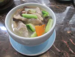 花雕酒原隻鮑魚(二隻起) $48落單有誤會,由於兩隻起叫,咁就點餐紙寫左個2字,即係要2隻,但係嚟左4隻要就話落左我2份,師傅以為2隻為1份,收我$48x4隻既錢,話岀咗食物唔收得返,好無奈地2隻變4隻。但鮑魚醃得幾好食,十分重陳皮香又帶點花雕酒味,而且煙韌彈牙,可一試。