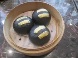 黑金流沙包 $30成日見人地打卡影相食黑色既流沙包,自己未試過,見到呢到有就叫嚟試下。估計係竹炭整成黑色,食落冇特別既味,可惜包身比較硬,而流心餡就做得不錯,有沙沙口感。