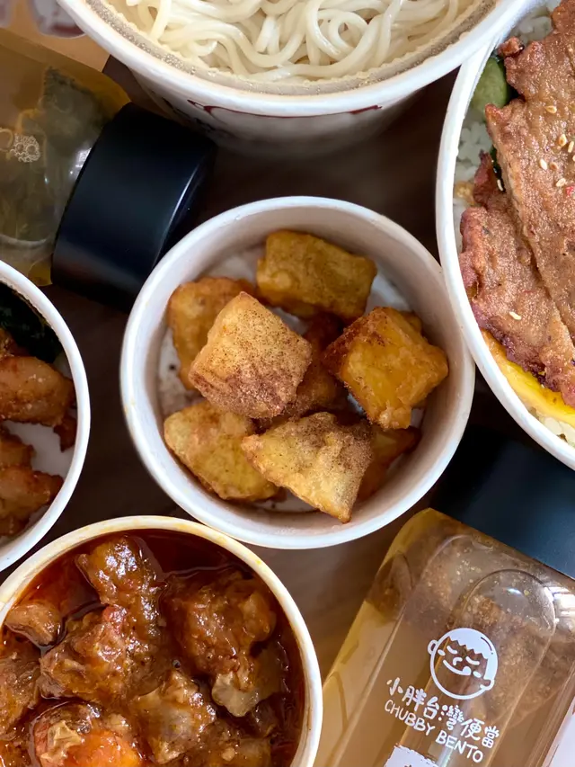 觀塘新開左呢間小胖台灣便當,佢既橙色店面好突出🧡而且見到都幾多人排隊買外賣,所以即刻提議男朋友食呢間🤣今次我地叫左兩個餐,套餐包埋飲品同埋一款小食~主食:三杯蜜汁烤雞排便當(套餐:$62)雞排好大塊好厚!雞排烤完仲係鎖住肉汁好juicy👍🏻食得出雞排本身有用醬油醃過,蜜汁亦都甜甜地送飯食好好味😋便當亦有唔同配料同蔬菜,包括粉絲、菜、粟米、蛋等等麻辣鴨血肉燥寬粉(套餐:$64)中等辣度🌶🌶寬粉好Q彈,同時掛哂啲麻辣汁,幾惹味🤤鴨血好多塊而且好厚,數過都有7塊咁多!口感細嫩爽滑,咬落去有彈性😄肉燥就有大有細,都係五花腩肉,肥瘦比例適中,肉都煮到好腍👍🏻小食:梅香脆地瓜見到炸蕃薯既表面有啲粉紅色既梅子粉,少少酸甜味點綴,增加脆地瓜嘅口感~蕃薯外皮炸到好香脆,脆得黎唔油👍🏻一舊接一舊食到停唔到口😆五味醬拌茄子茄子煮到好腍,表面灑上柴魚片。五味醬原來係由蕃茄醬、砂糖、烏醋、油、檸檬汁等混合而成。五味醬質地有啲似章魚燒汁,但味道就甜甜地酸酸地,味道層次都幾豐富!成個配搭好日式又好好味🤣飲品:芙香蘋果茶🍎佢係冷泡茶,有個小茶包,無論香氣同味道都散發出淡淡既茉莉同蘋果味☺️食辣野時好解渴👍🏻熱金橘檸檬茶🍋雖然睇落好似好平凡,但份量估唔到佢熱飲都好大杯。而且味道好濃,仲有兩片新鮮檸檬片;用料充足,越飲檸檬既甘甜味越突出🤤…查看更多