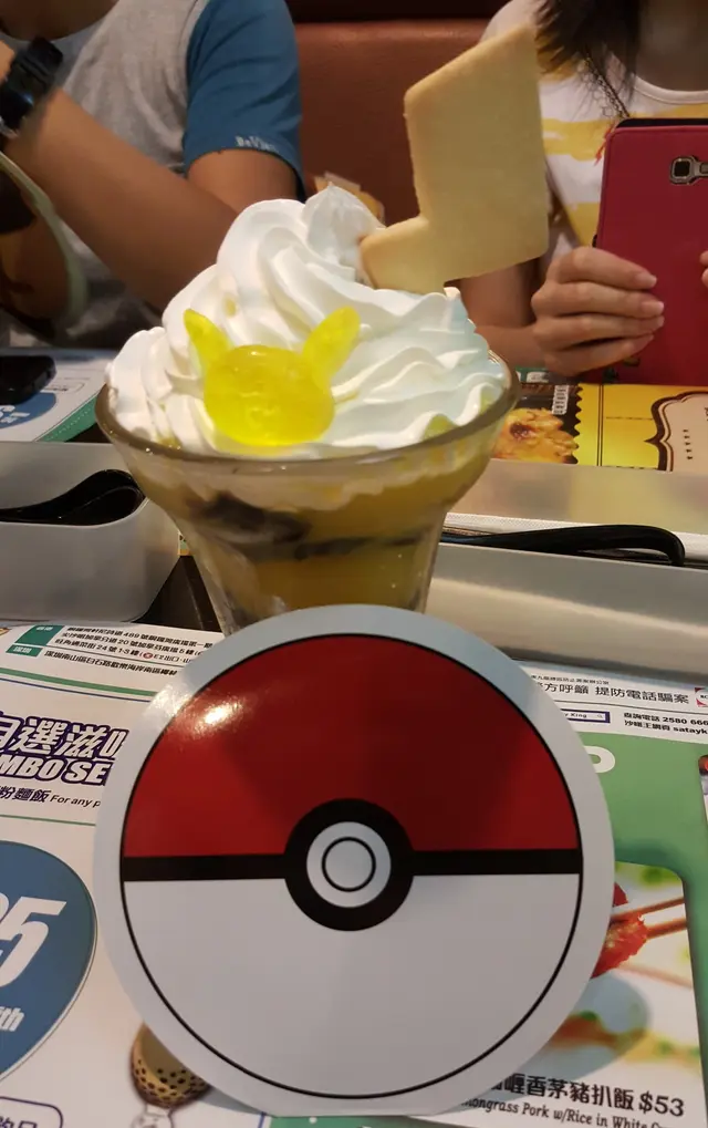 給可愛的「比卡超」騙到了 stellashea等级42015-08-012K 瀏覽 關注 有留意開飲食資訊的朋友,相信大家已經在不同的渠道得知沙嗲王近日推出了一系列比卡超食品,當中最受注目的必定是配有數款古怪顏色咖哩汁的比卡超咖哩豬扒飯!一向知道沙嗲王食客不少,但沒想到在比卡超的效應下,簡直是人山人海,而電梯前的位置全都企滿了人群,太可怕了!不過若想早一點入座,亦可選擇「搭枱」,只需等候大概5分鐘就能安排入座了,算是運氣不錯吧為配合主題,餐廳在不同的位置也會擺放或貼上小精靈的相關飾品,而場內地方其實蠻大的,分成左右兩邊,加上燈光暗淡及一盞盞吊燈,頗有格調的,而座位方面,設有大量卡座,蠻舒服的餐牌方面,原有的食品保持不變,而小精靈系列的則另外印在一隻大比卡超上。精靈系列主要有7款,咖哩飯、薄餅、甜品及4款飲品,最重要的是凡惠顧精靈系列食品也會附送紀念杯墊或便條紙,不過以隨機派發形式進行,不能自行選擇心儀的款式比卡超芒果沙冰 $38[評分:6/10]芒果沙冰配合了比卡超的鮮黃色,外表蠻可愛的,但取上手時出奇地輕,沙冰上方擠上了大量的忌廉,忌廉面再放上了一粒比卡超硬糖及一塊閃電型的曲奇當是比卡超的尾巴,而底下鮮黃色的就是芒果沙冰,為配合比卡超身上的橫紋,店方還加入了黑色的涼粉小粒點綴,相當精緻比卡超芒果沙冰 $38先試一口芒果沙冰,沙碎不算太多,不太感受得到「沙冰」的應有感覺,味道方面,有點過甜了. . .芒果味似是加入芒果糖漿作罷而不是以新鮮芒果打成,至於涼粉粒,入口較軟,不太特別。最好吃的可算是閃電曲奇了,曲奇夠脆,牛油味蠻香的,尾段還有點朱古力提味,相當不錯。而比較離譜的是忌廉份量多得. . .佔了3分1杯. . .飲品份量較少. . .若果可將忌廉轉為雪糕,相信感覺好多了火狐狸士多啤梨梳打配啫喱 $32[評分:7/10]用上了士多啤梨糖漿來充當「火」狐狸,用上了高身杯子,感覺修長,上方同樣擠有忌廉,還有一塊印有小精靈模樣的朱古力牌。而最特別的是,後方插有兩隻粉紅色棒棒,還以為是膠匙,但正想取起時,發現原來是兩枝半透的硬糖呢!若想把兩條完全吃掉恐怕也要多花一點時間了。飲品方面就是一般加入了士多啤梨糖漿的梳打水,沒甚麼特別,但感覺比比卡超芒果沙冰要好吧紀念杯墊每當飲品來到時,店員也會給我一個精靈球,雖然自行打開才會知道是那個款式,確保公平,而杯墊共有7個款式,非常幸運地竟抽到比卡超和小火龍!!當然要取回家好好收藏~!細海鮮忌廉湯窩鍋 $34[評分:8/10]正式吃飯前先來個湯品,以$34的價錢有這個份量已感到不錯,再用湯匙看看湯內有些甚麼海鮮,發覺非常足料呢!有魚肉、蝦粒及蜆肉等. . .連殼的蜆肉大大隻的,入口帶點口感及鹹鮮,至於其它配料也是大大件的,加上沒有雪藏味。再試一口湯頭,稀稠程度控制得剛剛好,入口柔滑且帶陣陣忌廉香及鮮甜味。另外,還有一小件法包附送,樣子有點像粉刷呢,法包烘得脆身,不過有點可惜的是沒有塗上蒜蓉牛油醬,有點失色比卡超辣肉醬比薩 $48[評分:6.5/10]其中一款主菜也終於來到了~不過一看到賣相. . .失望. . .薄餅扁平,細細塊的,放在圓形木板上. . .送來時沒有傳來薄餅應有的香氣,薄餅沒有太多餡料,真的只有數片辣肉腸及芝士。最特別的總算是插上了一面比卡超小旗子,還有在一片薯仔切片上印上了比卡超的圖案吧!想要取起一塊時,切割位完全起不了作用,整個薄餅也被取起來了. . .比卡超辣肉醬比薩 $48需要用雙手把薄餅絲開,雖然薄餅是熱辣辣的,但拉起時只有微弱的一絲芝士絲. . .幸好表面烘至微焦的芝士尚算香口,而辣肉腸也相當惹味。至於底下的餅底,其實是平當經常在印度食店吃到的油酥餅,酥餅邊位烘得鬆脆,但由於配料比較濃味,所以吃不到酥餅香,還是感情餅底過薄,沒太多口感。再試試這片精華比卡超薯仔片,薯片經已變冷,沒甚麼味道及口感,普通的薯片也比這個好吃比卡超咖哩豬扒飯 $78[評分:7.5/10]最受大家追棒的比卡超咖哩豬扒飯也來到了!利用被染至淡黃及黑色的飯粒堆砌成一個大大的比卡超頭,再在飯面上貼上眼睛及咀巴,還有兩小片車厘茄扮作紅暈。大大隻的超可愛呢~旁邊杯內的藍色物大家猜到是甚麼嗎?哈哈!沒錯!就是藍柑咖哩汁了!看到實物自己也忍不住笑了,而且禁不住說了一句:太奇怪了!比卡超咖哩豬扒飯 $78咖哩汁其實有3款可供選擇,分別是:蕃茄咖哩(紅)、菠菜咖哩(綠)及藍柑咖哩汁(藍)。前兩者的顏色及味道看來相對普通,所以愛嘗新的我當然要選藍色的!藍柑其實是一種生果,抽取了當中的色素與白咖哩混合,就創造出這個顏色怪怪的咖哩了。味道其實跟正常的白咖哩汁無異,質感同樣順滑,味道蠻香的,不過辣度就好像比以前稍為調高了。忍不住也學學其他人倒一點藍咖哩到比卡超的眼及咀,再拍下這個恐怖的樣子了比卡超咖哩豬扒飯 $78正式探索一下比卡超的頭部,由底下開始切起,切到正中位置,終於發現到豬扒了!豬扒切成三件,份量不多,豬扒加入了香茅,味道蠻香的。豬扒醃得入味,口感軟腍,但邊位位置就炸得有點乾了,加上豬扒比較薄身,令口感不夠豐富。另外,飯內還加入了少量蘑菇片作提味及增加口感之用呢比卡超咖哩豬扒飯 $78至於飯粒方面,感覺份量較一般的多。店方可能為免比卡超的外型有倒塌的危機,所以飯粒教得比較硬身,正好適合喜歡富口感的我。而黑色的兩糰米飯