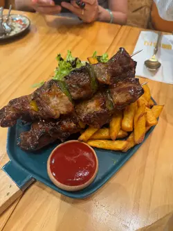 本身透過OpenRice見到呢間嘢係油尖旺區好出名,今次慕名而來。係樓下位置唔係咁容易搵,係後巷有小小黑,最好下晝去,不過平日夜晚唔係好多人。今次嗌咗斑馬二人餐 698💰佢嘅份量真係好大,三個人食咗二人餐,另外加多一個意粉,完全係要打包兩盒主食帶走嘅程度。但份量大之餘味道估唔到完全唔敷衍。原本以為間餐廳以量為主唔走心。最好食係黑毛豬串燒影唔到有幾大但真係好好味,肉質好Juicy,甜甜地。配咗甜番薯嘅薯條,反而唔係薯仔。第一啖食到嗰陣好驚喜,因為冇油炸同埋油膩嘅感覺。建議平日嚟飲杯咖啡同朋友chill下。…查看更多