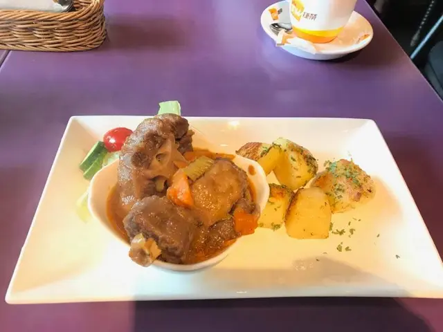 依間餐廳位於大埔墟地鐵站附近。大部份晚上都見好會見到有人係出面等位。鋪面唔算好大,有2 層。依間最吸引之處就係不但有好多菜色選擇,而且價錢係好平民,大部份set餐都係around $60-$90。今次點左2款set 餐。是日餐湯係好清甜既薯仔雜菜湯。係幾開胃,不過我覺得略咸左少少。意大利乾酪雞扒($74)可以配飯/意粉/薯菜。而我今次配左意粉,口感好爽滑,唔乾,仲有d咸味。每碟主菜配有沙律,我係好少可會將配菜沙律食哂,蕃茄仔都好鮮甜。個雞扒超級推薦,外皮煎得脆脆的,內裡好juicy, 肉質好嫩口。佢配既乾酪醬味道酸酸的,成個感覺唔會好肥,好油。法式紅酒炆牛尾($80)醬汁夠哂濃稠。撈飯食一流,十分開胃!個牛尾炆得岩岩好,十分鬆軟同嫩口,最重要係骨肉分離!總體黎講,好少可有咁高質既平民西餐廳,食過一定會再翻兜。