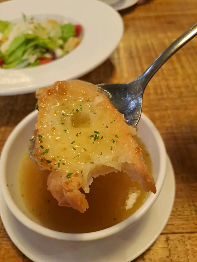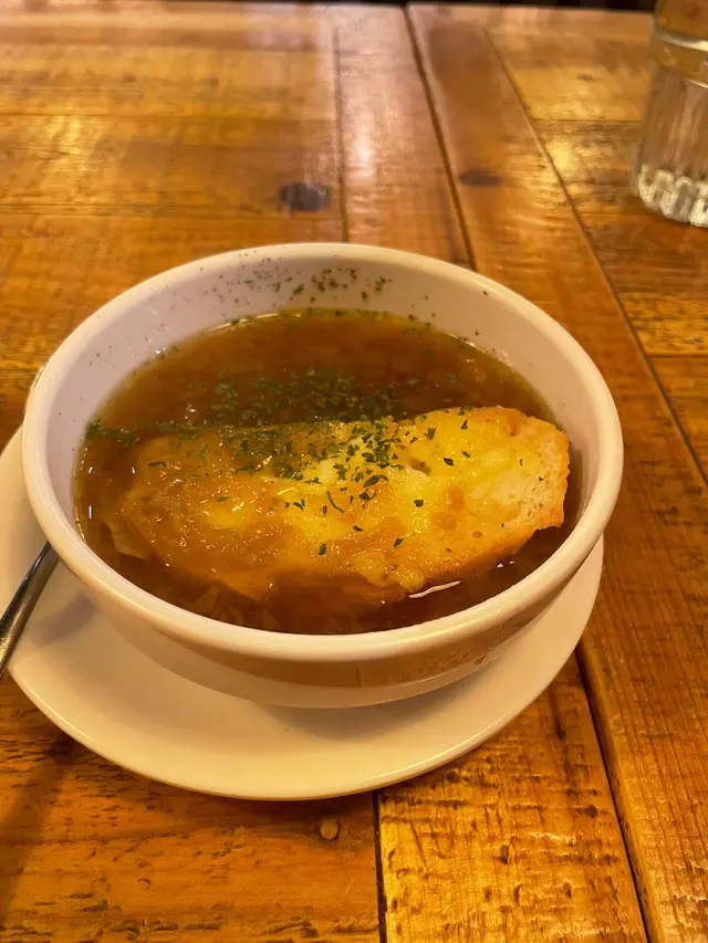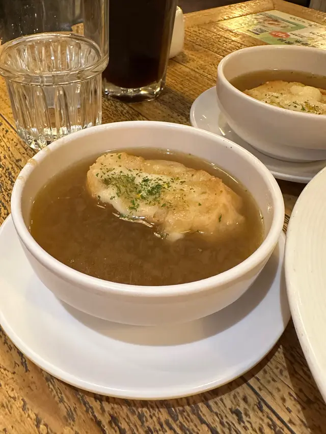 這次與朋友到訪這間西餐廳,一踏入店內便感受到輕鬆雅緻的氛圍。卡位設計舒適寬敞,椅墊柔軟有承托力,背板高度足以提供私隱感。燈光溫暖柔和,環境整潔,空間寬敞,整體給人一種輕鬆不拘束的感覺,是適合聚會或慢慢享受一餐的地方。前菜方面,我們先品嚐了香濃南瓜忌廉湯。湯身濃稠幼滑,帶天然南瓜的甜味與奶香,口感溫暖舒心,是一道相當出色的開胃湯品。另一款法式芝士洋蔥湯則味道更深層,洋蔥熬得軟嫩甘甜,湯底濃郁不膩,加上芝士,既香口又富層次,是喜歡法式風味的朋友不可錯過的一道。凱撒沙律(半份)則以清爽亮相,沙律菜新鮮脆口,凱撒醬調得濃淡適中,芝士香氣突出,配合香脆麵包粒,簡單卻很耐吃,清新之餘也能平衡後續主菜的厚重感。飲品方面,玫瑰蜂蜜果茶香氣自然,玫瑰味清雅不造作,入口帶微甜,茶香與果香相互平衡,是很治癒的一杯茶。而凍奶茶茶味與奶味比例恰好,香濃順滑,甜度適中,冰度控制得宜,是喜歡港式口味的客人會滿意的選擇。主菜部分,芝士焗肉醬意粉令人印象深刻。意粉煮得軟硬適中,肉醬帶濃厚的番茄與肉香,與焗得拉絲的芝士完美融合,每一口都充滿濃郁而舒適的味道。另一道黑松露忌廉魚柳焗飯則更顯高貴氣息,忌廉醬香滑不膩,黑松露味道馥郁卻不搶味,魚柳細嫩且與飯粒相當合拍,是一道令人會想回味的菜式。焗薯皮拼盤金黃香脆,外層微焦帶香,內裡軟綿細滑,每口都充滿濃郁薯香。搭配蘸醬,讓味道更添變化。份量充足,無論分享或獨享都適合,是一款簡單卻令人回味的小食。最後的是日甜品蛋糕為整餐畫上甜美句號。蛋糕質地鬆軟,甜度控制得宜,不會過膩,作為結尾剛剛好。總結而言,這間餐廳無論環境、服務還是菜式質素都相當穩定,適合三五知己相聚、悠閒用餐,值得再次光顧。…查看更多