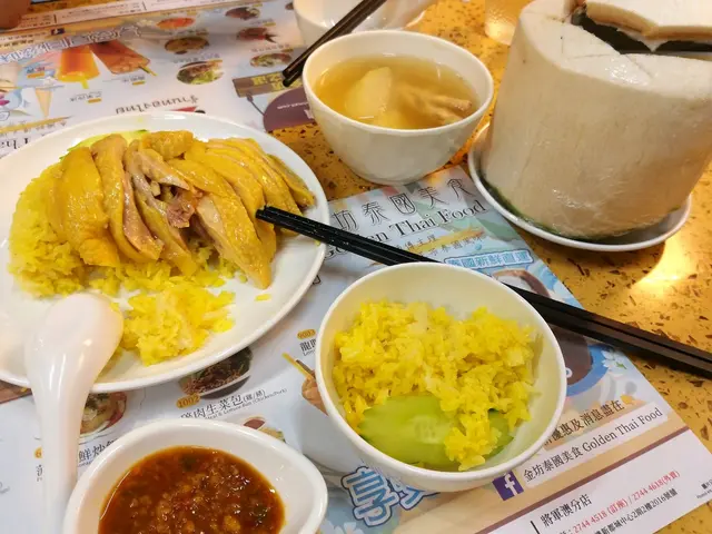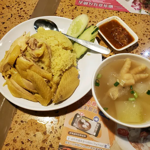 【大熱海南雞飯+菠蘿海鮮炒飯🤓驚喜三色冰】在荃灣食泰國嘢的話,可以試下路德圍既金坊泰國美食今次lunch menu食openrice首推top 2既大熱海南雞飯+菠蘿海鮮炒飯,好食wo仲叫左小食同野飲______________________________【食評篇👇👇👇】🤓🤓評分benchmark參考🤓🤓✏10分 - rare heaven😇✏8, 9分 - 屬高分之作✏7分 - 正正常常,同平時食到嘅差唔多 ✏6分 - 有d失望,expect佢會好食d✏5分 - 伏野,零分重作🍛lunch menu既主食價錢$5x啦~送湯同野飲🍛菠蘿海鮮炒飯 (💝8.5/10)- 材料非常豐富,菠蘿、大蝦、雜豆、肉鬆、提子乾、腰果、青瓜和蕃茄,呢點已經贏左其他泰國餐廳- 想特別講下佢加左😽特製醃料臘腸肉😽,少少甜味好滋味,佢比中式臘腸甜,同少油花粒👍,唔會硬易咬(compared with中式臘腸),加分- 呢兩點我比高分$54海南雞飯 (💝8/10)- 雞肉嫩滑肉質不會鞋,啖啖肉仲要冇骨- 秘製的酸甜醬汁,開胃辣辣地,配金黃雞油飯- 想特別講講雞肉份量,at least唔係少 (話說小編去過西灣河有間爆出名海南雞飯店,雞肉少到嚇親😹)- 高分因為佢雞嫩+份量足$52🍡凡惠顧午餐可半價配小食,叫左2份小食🍡 青木瓜沙律 (💝7/10)- 開胃的前菜,健康野- 佢有d小配菜小蝦米,花生,車厘茄,青檸半價後$4碎肉生菜包 (💝7/10)- 豬肉碎肥瘦balance,爽口新鮮,辣味比海南雞飯醬汁強,食得更開胃半價後$14🍸泰式特飲有龍眼冰、三色冰、青檸梳打、椰汁沙冰、菠蘿沙冰、珍多冰、泰式鹹檸七,都係加$6 jar~🍸三色冰 (💝9/10)- 有驚艷到的一杯野,事關佢有濃濃的椰汁味,唔係一般溝左水微淡極椰汁味果種,你真係feel到好濃好濃果隻,微甜- 個底d三色冰,咬落有椰絲- 高分,主要因為濃濃椰汁有誠意+$6龍眼冰 (💝8/10)- 龍眼drinks好多地方都有,但咁多粒、同大大粒龍眼肉,就真係少見既- 所以一定高過7分 (7分means average)+$6______________________________【環境篇👇👇👇】- 小店餐廳/茶記枱setting______________________________Overall- 只係食lunch menu,已經被佢surprise- 我見其他枱散叫野食,仲吸引tim...✏✏✏✏✏✏✏👅味道:8.5/10🌌環境:7/10🙋🏻♂️服務:7/10💰價錢:$136 (不設加一)👍🏻推薦:8.5/10______________________________(📍荃灣) 金坊泰國美食荃灣荃興徑13號地下…查看更多