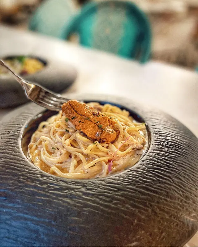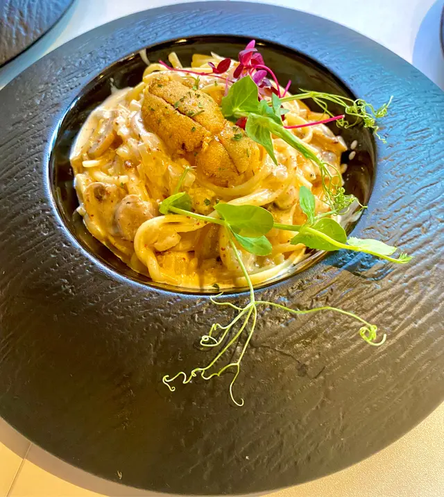 呢間新式摩洛哥風cafe最近係ig岀現率好高🤣 我諗主要原因都係佢既裝修好特別, 有個沙灘🏖咁既area~ 又有個好靚既泳池仔⛲️唔單止好打卡able🧚🏻♀️食物質素都好高🤍而且值得一提既係店員服務好好! 嗰日咁啱落雨, 然後我地又想坐沙灘位, 店員好細心咁俾籃我地裝鞋同遮~ 又幫我哋執好啲枱既擺位方便我地, 都冇嫌我地麻煩🥰 不過可惜既係冇得影户外既環境俾大家睇😞🤍海膽忌廉汁扁意粉 $138意粉充滿住香濃既海膽味, 而且冇海膽嗰陣苦味🥰 海膽忌廉汁同意粉分佈好均勻! 而且都好足料咁放上一大塊海膽😋 好推介俾中意食海膽既大家! 🤍軟殼蟹鹹蛋黃忌廉汁意粉 $118一整隻既軟殼蟹炸到好脆😍 中間仲保留到好多蟹肉! 有外脆內軟既口感😋 唔係好似岀面好多餐廳咁, 炸到細細隻, 得翻層殼咁🤣 鹹蛋黃味都好香濃! 仲有鹹蛋黃粒係意粉面🤤🤍香煎北海道帶子紅菜頭汁意大利飯 $148意大利飯相對比較遜色, 味道比較普通, 整體偏甜😬 帶子好大粒🤩 但調味就有少少過咸😮💨 意大利飯而言, 質地偏軟身🙈 不過整體黎講醬汁都係均勻同足料…查看更多