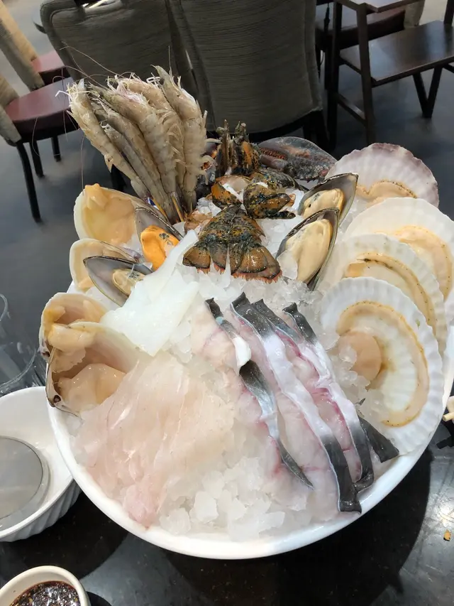 同班friend一起食呢間中餐館,首先講下菜式,一般既中菜茶樓都有,例如烤鴨,炒飯,粥粉面飯基本都會有。環境算一般,但如果係靠窗邊既位置有風景食得都會開心D,臺與臺之間距離比較近,睇落去冇乜問題,衛生唔係幾好,好油。海鮮會按人頭數比相應數量(每人一隻),份量睇落唔算少,每個人每樣海鮮都可以食到,推薦帶子龍蝦同青口,味道OK。湯底冇乜特別,得鹹味,落左味精同鹽既味道,好普通。鮑魚好大隻,味道中規中矩,但係可以試下。而雞煲份量都算多,但唔夠入味,得表面有味道,不過有落香菜調味係咁上下。總體黎講其實就普通茶樓feel。…查看更多
