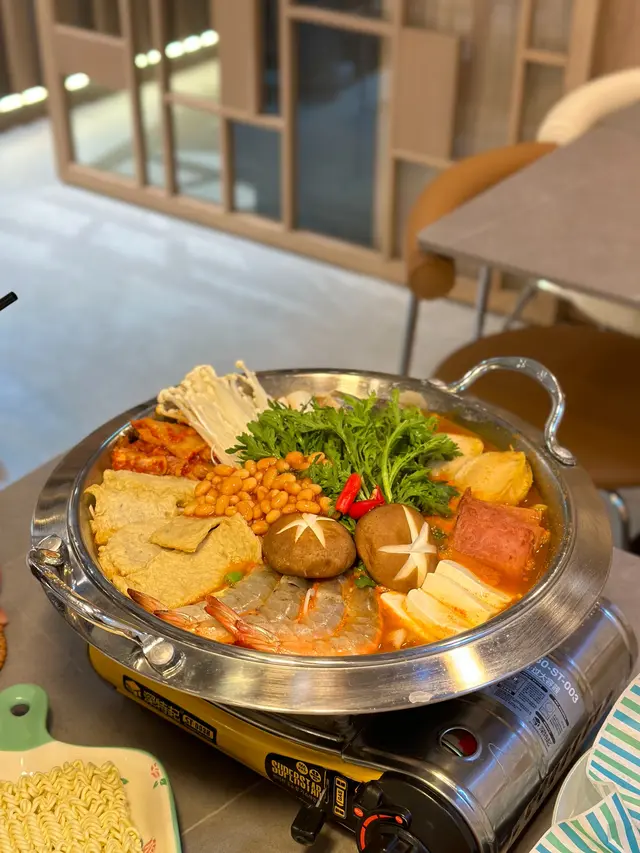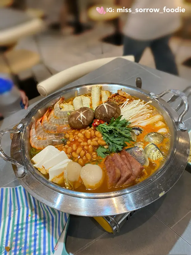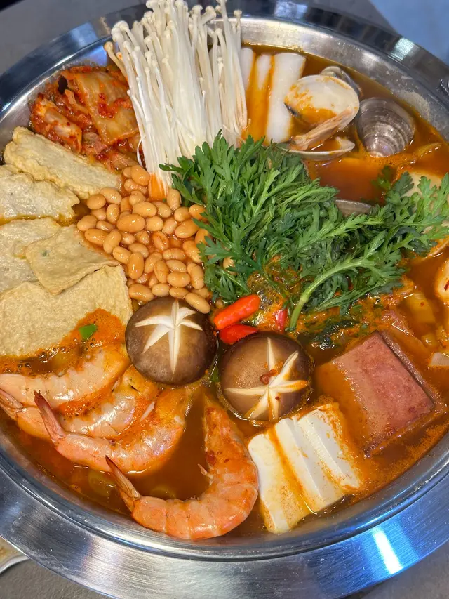 上網見到佢介紹覺得好正所以專登過去,坦白講,呢間鋪唔近地鐵站,奧運站要行7~8分鐘先到去到唔使等,即刻有得坐低。但俾二人座,係好細嘅枱,我地有手袋書包要攬住,因為唔想放地下,但買果啲一袋二袋就無辦法要放地下。枱興枱之間好窄,肥少少都好難行過,此其一。其二,前菜可以fill 一次,我地太肚餓,好快就食咗一碟,叫咗fill, 一直都無fill 到。差不多食哂主食,繼續叫佢fill, 起碼叫咗4~5次,先記得俾我地。其實去到最後,我地已經唔係為咗食呢碟泡菜,純粹係唔明白點解咁少一件事都要叫咁多次,重點唔係真咁好忙🤦🏻♀️好啦講反嘢食紅薯芝士條(有拉絲㗎)($78)好快黎到,都好食嘅,甜甜的,芝士味唔算好重,仲唔錯,有3.5分/5海鮮部隊鍋 ($368)有鮑魚,蝦,蜆,其實海鮮都唔算少,但除此之外配料就較少,有午餐肉,年糕,泡菜,少量嘅菜,以及大量芽菜同洋蔥。最好味係最後嘅公仔麵。不過不失,但要專登去食的話,有少少失望嘅,特別真係坐呢一方面。…查看更多
