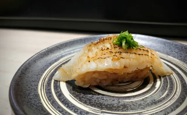 鮟鱇魚肝以壽司方式食用,感覺好得意,超大嚿配上漬物,中和濃味,令件事恰到好處。白子壽司非常足料,食落成個口腔都好清新,墮入溫柔香