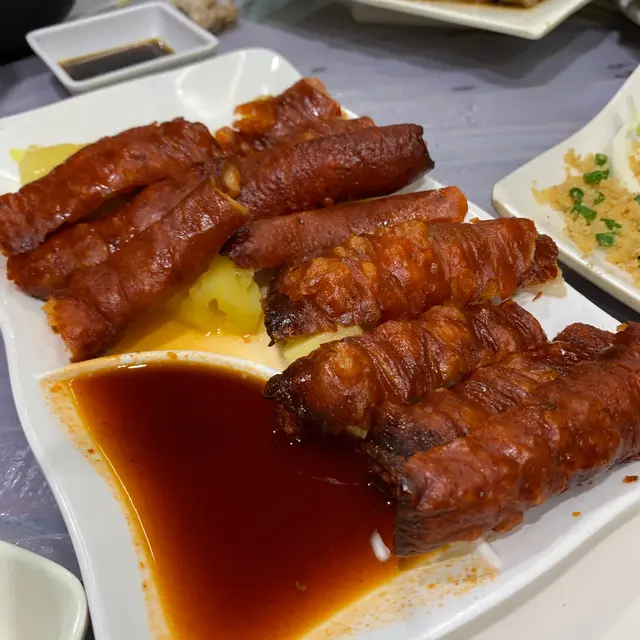 個龍蝦見隔籬兩枱都嗌,搵勻個餐牌都見唔有,唯有問吓店員,原來係新菜式叫「飛天龍蝦」,轉咗兩斤鬆少少嘅花龍,5個人食啱啱好,個龍蝦好爽,個麵好脆,加埋個汁啱啱好🦞估唔到個皮蛋係流心👍🏼👍🏼另外仲嗌咗Wasabi魷魚圈,上到枱嘅時候見佢白色好似冇乜料到,一方入口啲辣轟晒出嚟🥵🥵原本想試着火嗰隻雞,怕食唔晒,唯有嗌半隻炸子雞試吓🔥🐓可惜冇瀨尿蝦同元貝除開每人都400都唔使算幾抵食,一定平過去西貢、鯉魚門…查看更多