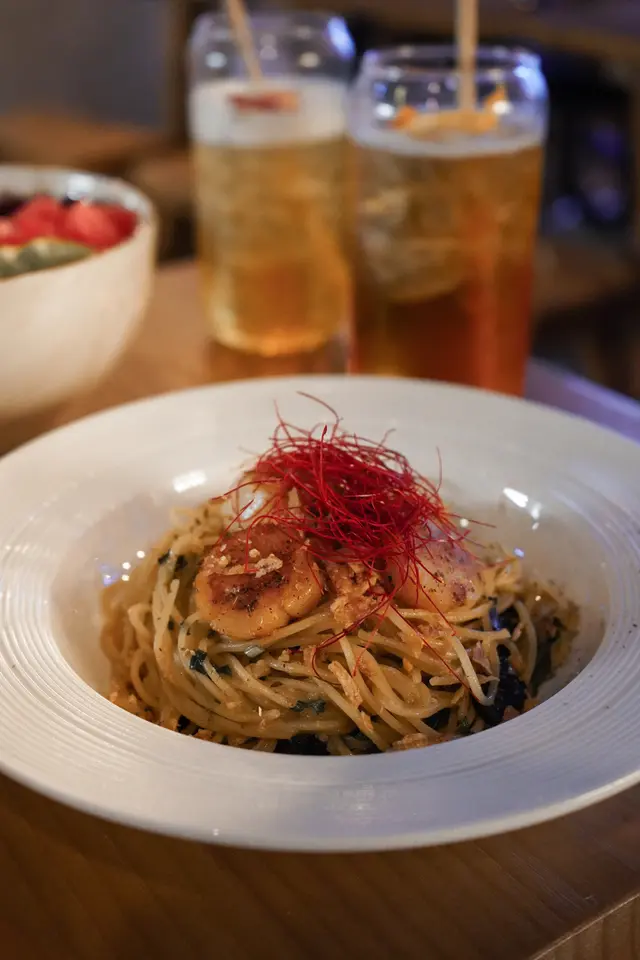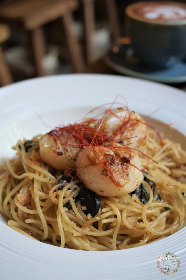 在蘭桂坊精品酒店裏,有間以波西米亞為設計意念的咖啡店——角落Corner Café。波西米亞除了指一個中世紀的王國之外,也指一種自由、率性、非傳統的生活態度。的確,這間咖啡店的運作真的有點非傳統。例如食客可以用手機鏡頭掃描單據上的二維碼,到一個網站點餐;咖啡店有部𨋢,食物都由一樓廚房運送到二樓,𨋢裏面只有一部兩、三層的餐車。今日到Corner Café食午餐,我點了玫瑰鮮奶咖啡作飲品,主菜是煎帶子香草黑蒜意粉。我嫌意粉比較多油;帶子保留了肉汁,可是味道偏鹹;整碟意粉份量不多,不過黑蒜粒還算足料,整體來説不過不失。玫瑰鮮奶咖啡 $46煎帶子香草黑蒜意粉 $128…查看更多