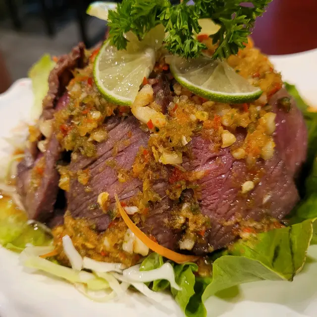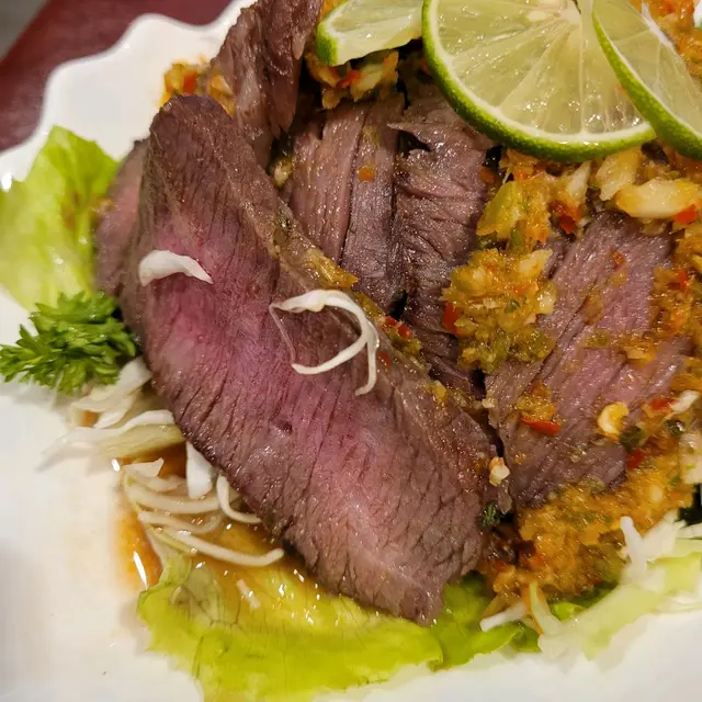 必試燒安格斯牛肉 Miss dorizzz等级42021-09-164K 浏览 关注 食泰國菜首選九龍城本以為閒日夜晚小店比周末較易揾位,誰不知行過一轉頭就已經幾乎滿座,幸好是我們較早吃飯,否則,可能都要等位到底是呢間餐廳根本受歡迎還是泰國菜的魔力呢?基本上每逢吃泰國菜我都一定會吃燒牛肉,但這間餐廳的燒安格斯牛肉(青檸),真的要推薦給大家燒安格斯牛肉光看賣相已經很吸引,你看看中間粉紅色的肉質,澎湃的肉汁充斥口腔,特別是中間的那個部份,燒得剛剛好不會完全熟透,上面灑滿了青檸酸辣汁,份外刺激開胃。酸辣汁比較辣,如不能吃辣,只要吃內層的牛肉便不怕唷,每一片厚切之餘也很大片,有10幾塊炸蝦餅拼魚餅蝦餅炸得很香脆可口,而且十分彈牙蝦味算濃郁。炸魚餅還是第一次嘗試,但味道很特別,魚餅應該是用了多種魚肉混合而成,內裡還有蔥粒,沒有腥味之餘還吃到香蔥清新味道,配上泰式酸辣醬,外皮炸得脆脆,裡邊軟軟的,雖然沒有蝦餅那麼彈牙,但味道也不錯:)海鮮及菠蘿粒等配料十分足料,炒飯顆粒分明,而且菠蘿粒很多汁,配著每口飯來吃,酸酸甜甜的菠蘿汁很開胃。…查看更多+ 7以上食记乃用户个人意见 , 并不代表OpenRice之观点。赞好分享必試燒安格斯牛肉 泰皇閣泰國菜館 https://s.openrice.com/QrbT0ieCzW0检举 张贴 评分5味道4环境5服务5卫生5抵食推介美食燒安格斯牛肉(青檸)$110燒安格斯牛肉(青檸)$110燒安格斯牛肉(青檸)$110蝦餅拼魚餅$76泰式菠蘿炒飯炸蝦餅拼魚餅燒安格斯牛肉用餐日期2021-09-13用餐途径堂食人均消费$150 (晚餐)