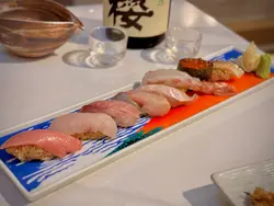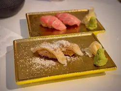 刺身拼盤好精緻,刺身有三文魚、油甘魚同赤蝦,勁鮮味,蝦有大量嘅膏。至於壽司有深海池魚、間八、赤鯛、三文魚、左口魚邊同蟹籽,嚿嚿都鮮香十足,送sake一流