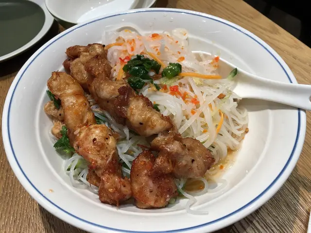 大概六點鐘左右,未到正式晚飯時間,見到呢間裝潢幾別緻比起其他分店多左一份小清新既感覺餐廳內空間感十足,樓底高,係正商場中央,較為通透不過可惜座位之間並唔算寬落,四人枱之間只係隔左一條好小的空隙基本上同搭枱無乜分別,當時食飯左右兩邊都坐左人,所以有點逼服務方面,點餐都係自己手機落單,隔左十分鐘左右就上菜食物評價燒豬扒撈檬 $95每次黎食都係食撈檬,因為佢既配菜好足,芽菜生菜蘿蔔絲花生都比足感覺上都比較新鮮同無咁油,佢既魚露味道偏淡,落左半枝先夠味至於豬扒,口感唔錯,肉唔會太鞋又有少少汁,食落口第一淡有少少甜味可能係醃左D汁既味道,不過整體都係好食燒雞撈檬 $95燒雞份量相對較少,畢竟個價錢並算平,只係比得2串雞肉分量但係雞肉都係嫩口同埋滑,所以都係好味整體而言,越南菜黎講價錢偏貴,但係餐廳環境相對較為乾淨服務黎講亦都無乜,手機落單,比錢都係自己拎張單出去,咁都要加10% ,不過論食物黎講都係好食,值得推介