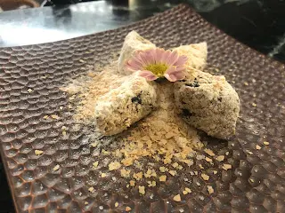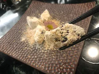 難得找到一間有創意,同時保持傳統風味的潮州菜館,地點在iSquare, 非常方便。餐廳不是很大,但雅致,舒適。和家人慶祝生日,慢活一下,輕鬆下。進門口bar枱,感覺很新鮮,一看便知不是走傳統格局。入座後休息了一會才點菜,因為「慢活」,所以分開幾次點菜,上菜時間也適中。串茄核桃沙律:👍👍有創意,做前菜一流。核桃沙律釀在串茄內,清爽及味道平衡,就算怕食蕃茄的朋友也可試試。潮式炸粿肉:👍👍有傳統風味樟茶鴨:👍👍👍 好香煙熏味,肉質基本上juicy。其中一件鴨髀乾咗啲,可能因為肉厚🤭蘿蔔廣章:這個我最難忘。這個傳統前菜看來沒有什麼特別,但有家鄉味😍 讓我想起兒時和媽媽一起做菜的時光……桂花糕: 賣相非常好,口感也不錯,味道卻感覺一般,桂花味不突出。燕麥一口薯:👍👍有驚喜,有創意,入口軟腍,燕麥中和口感及甜味,配搭很好。掛住傾計 。 有啲相唔記得映😅碧綠川椒雞:👍入味、雞肉嫩滑,有口感蝦蟹枣: 略嫌鬆散咗啲,味道不錯蠔仔肉碎泡飯:👍👍有鮮味,蠔仔肉夠大蜂巢豆腐:相對其他菜式,這個比較比較遜色,豆腐味唔係好出,被芡汁蓋過…查看更多