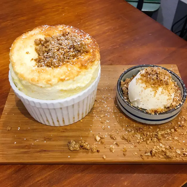 其實店鋪小小的,只有20個坐位左右,所以經常看到店舖門外有很多人在等候,今次走來吃這兩款人氣甜品「燕麥榛子梳乎厘」及「小倉抹茶窩夫」,「小倉抹茶窩夫」賣相吸引,長長的碟子上放了窩夫和紅豆,下面的窩夫微暖,外脆內軟,跟綠茶雪糕和白色cream配合紅豆一起吃,感覺不錯,好味,而「燕麥榛子梳乎厘」大約等了20分鐘左右,梳乎里看起來很大個,又脹又高,旁邊還附上呍喱拿雪糕,燕麥和榛子鋪在梳乎里上,吃下去很滑很軟身,而且帶又香味不會過甜,值得一試 …查看更多