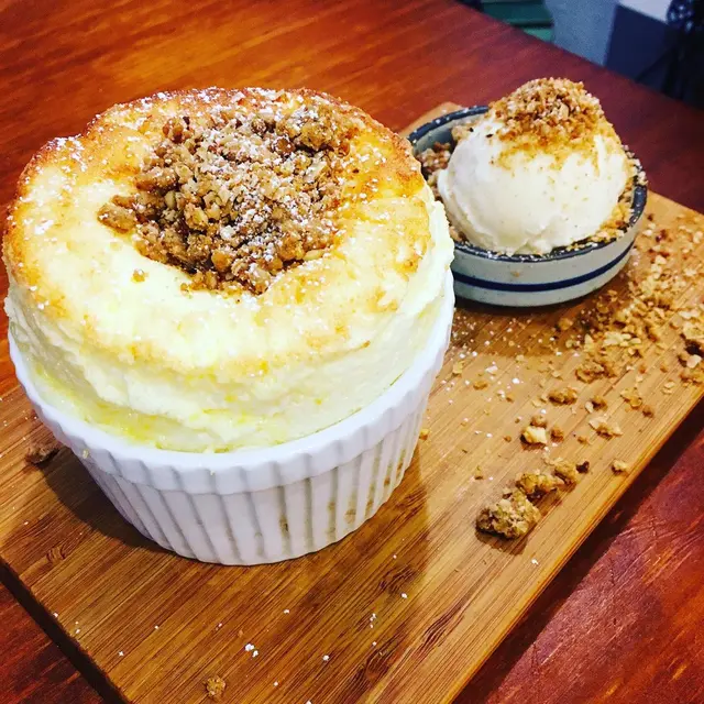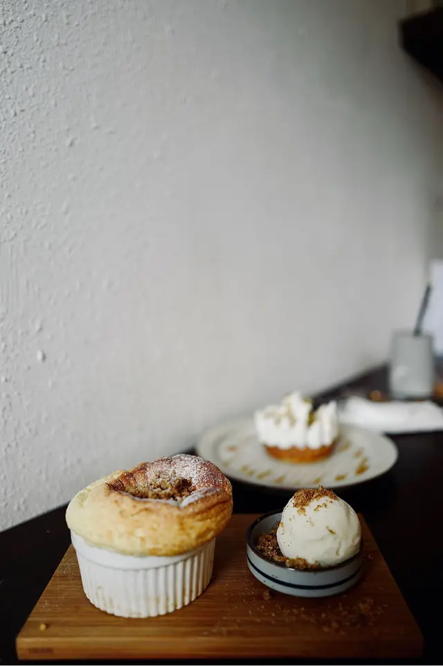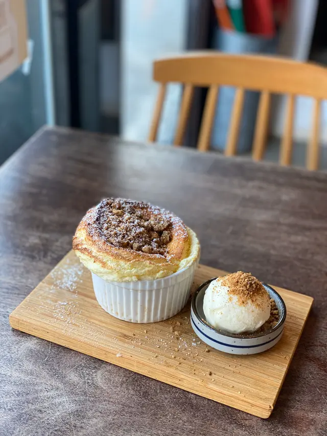 屋子咖啡也算是在大圍小有名氣,滿滿日式感的裝潢吸引不少愛好打卡者來訪,沒有很想打卡的我則是衝著食物而來的😆-🔸醬油蛋漢堡 + 米飯 $70🔸咖喱豚扒 + 貓飯 $80🔸燕麥榛子梳乎厘 $60🔸玫瑰荔枝氣泡水 $48-主食採取單點自選模式,每項獨立收費,米飯、料理、配菜自由組合,可按個人需要及喜好選擇最適合自己的配搭。兩個主食的味道只是正常日式料理水準,無失望亦無驚喜,算是對得起價錢。相反梳乎厘表現就有眼前一亮的感覺,口感非常綿滑、重空氣感亦有蛋香,配上雲呢拿雪糕和榛子燕麥脆脆,一冷一熱、一脆一綿的多重口感非常明顯,忍不住邊吃邊讚嘆真的太好吃了吧(*´꒳`*)(幸好有聽從店員建議快快手打個卡就開吃🤣)-總結:本來完成主食的感想是試過一次就可以了,沒料到之後的梳乎厘挽回不少分數😂是一個我會想念的甜點。…查看更多
