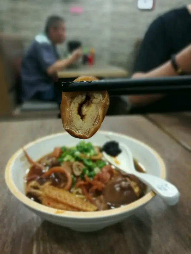openrice簡左一間車仔麵老店,環境唔錯,叫左米粉先,簡左大家推薦既魷魚,豬腸,豬皮同埋豬紅。阿姐問我要唔要辣醬,我話要就比左我一匙。一麵四餸36蚊,價格係觀塘算是ok喇碗麵很快食得,好大碗,雖然每一個餸得三四舊,但係每一舊都很大,特別係豬皮。本以為辣醬很辣,其實唔係,於是全部落曬湯入邊。加左小小紅醋更加正!魷魚:魷魚係因為見到openrice上大家各個都推介先叫架,魷魚ok,可能我本身麻麻魷魚,但係佢地既魷魚很有彈性,唔錯豬腸:豬大腸很粗,量都幾多幾,腸外面很脆,有嚼勁,但係腸入邊太多油,還有罪惡感。同埋有小小腥味,下次應該唔會再叫,但係唔驚肥既朋友可以叫,都係唔錯既。豬紅:豬紅好大幾舊,同埋很實,唔似其它地方果d咁鬆散,小小腥味,總體ok,除左豬紅本身原料唔錯,其他唔覺得有咩特別豬皮:豬皮係要大力推介既!!很大很厚實既幾舊,一睇就知道很抵食喇!同埋豬皮脆脆地,又很入味,我真係很鍾意,下次再去可唔可以僅係叫豬皮??哈哈米粉:有d硬,都係希望阿姐可以煮耐d再比我食,我唔趕時間湯:ok,原味冇乜特別,加左一匙辣醬就惹味,但係如果要辣既話可以試下枱上擺既辣醬,都唔錯,我試過。總之,雖然話間鋪係老店,但係總體麻麻wor,不過推介豬皮,同埋價錢都算抵食既,但係要素質就⋯唔高唔抵咯。…查看更多