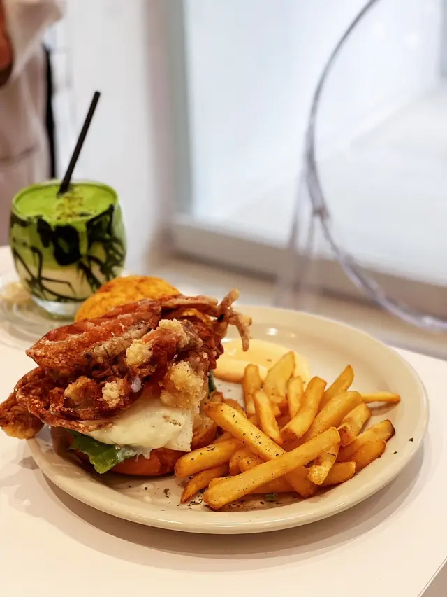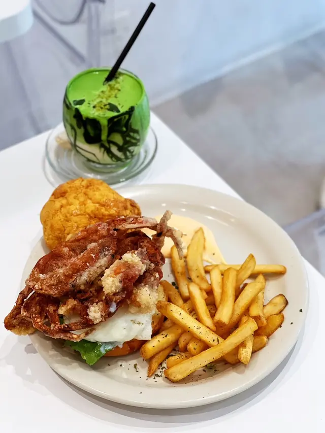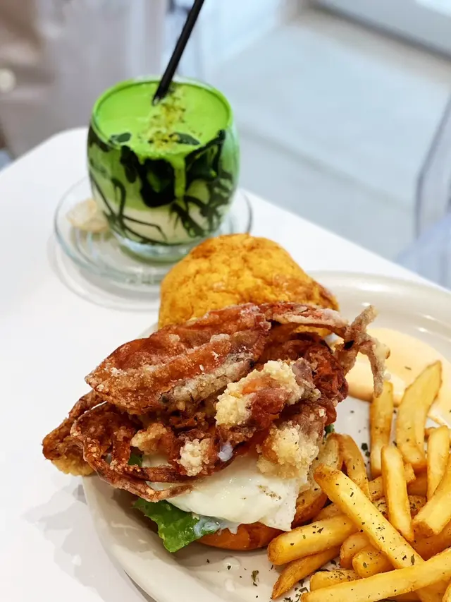 對比五顏六色嘅裝潢,有時純白比人嘅感覺更加清新脫俗👍🏻 係炮台山嘅「𝘉𝘶𝘯𝘱𝘩𝘢𝘯𝘵 𝘊𝘢𝘧𝘦」有住白淨又光猛嘅氛圍,而食物方面係又靚又好食,嗜甜嘅推薦佢地自家製蛋糕,會有驚喜😋今次分別叫咗兩份午市套餐,包餐湯或沙律🥗 餐湯蘑菇湯帶有點黑松露油香,質地結身,好清甜👍🏻 上菜算快手,好快已經上齊👍🏻 《 海膽醬油海鮮意粉🍝 》 $98 4.5 / 5意粉有鑊氣,所以感覺特別掛汁🤤 海膽味雖然無咁突出,亦有種海鮮醬油味散發出黎,唔過鹹恰到好處👍🏻 配料有大蝦、帶子同八爪魚粒等,份量相當闊綽😋《 珍寶軟殼蟹雙菠蘿漢堡配薯條🍟 》$108 5 / 5 🌟🌟🌟🌟🌟用菠蘿包做漢堡包真係相當有𝘎𝘪𝘮𝘮𝘪𝘤𝘬🤪 大過手板嘅軟殼蟹晾係太陽蛋上面嘅畫面亦好有趣🥴 就咁睇賣相已經高分~ 整體除左軟蟹蟹淋左少少之外都好滿意👍🏻 成個組合好夾,加上菠蘿肉同帶點微辛嘅秘製醬汁,鹹酸甜辣有齊,層次豐富🤤《 黑芝麻花生醬軟心芝士蛋糕🍰 》 5 / 5 🌟🌟🌟🌟🌟冇諗過芝麻花生醬可以融入芝士蛋糕😍 芝麻芝士蛋糕質感十分幼滑,尤其中間部分係半流心狀態🤤 有淺淺芝麻香,可能因為花生醬更搶味😋 唔好睇佢好大𝘗𝘢𝘵醬,實情花生香多過甜味👍🏻 不過蛋糕實在好大件,兩個人分都有啲飽🤣《 開心果特調奶 》$55 4.5 / 5初嚐開心果調配嘅飲料,估唔到比預期易入口😳 面層先係開心果奶蓋,甜得黎不失開心果香,攪勻飲會無咁甜👍🏻《 蜂蜜鮮梨冰搖果汁 》$55 4.5 / 5唔好奶製品嘅朋友哩杯係好選擇,蜂蜜加上香甜雪梨,清新自然,有解膩開胃功效😋整體食物賣相好打卡𝘈𝘣𝘭𝘦,食品配搭亦具有自己風格👍🏻 特別想𝘌𝘯𝘤𝘰𝘳𝘦蛋糕😍🤤🤤🤤———————————————🏠環境舒適度:💛💛💛💛👅舔脷回頭度:💛💛💛💛💛📸打卡able度:💛💛💛💛💛🙇🏻♀️服務滿意度 :💛💛💛———————————————…Read More