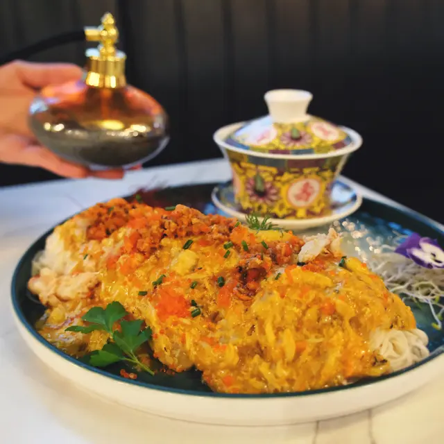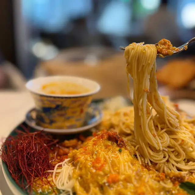 呢間cafe絕對適合覆桌!好欣賞佢環境優雅、舒適,適合放鬆聚會,加上佢嘅音樂都好有品味。前菜叫咗橄欖油帆立貝漬(HKD98),賣相吸引好靚,橄欖油同羅勒嘅風味一接觸到舌尖就強烈綻放,帆立貝新鮮彈牙,淡雅,拍得住omakasa嘅水準,加上有檸檬嘅新鮮酸味,各樣平衡得十分出色。主食 生拆蟹粉北京拉麵 (HKD298)上枱先會用女兒紅去除寒性同提升風味,食落都有淡淡酒香,加上用陳醋提鮮,陣陣酸味中和咗蟹膏嘅膩,十分出色。拉麵有彈性而且偏幼;蟹肉味濃郁、質地結實;蟹粉極度新鮮,澄黃色十分誘人;加上有蟹籽增加口感,令人想一食再食。龍蝦扁意粉 (HKD328)龍蝦汁同蕃茄嘅鮮甜互相碰撞,好有火花、唔膩;扁意粉有咬勁,要讚一讚佢用嘅龍蝦肉:好結實,啖啖蛋白質,唔會太柴。兩杯飲品:Smoothie - Giant Green (HKD78)超級新鮮、refreshing,青蘋果味出眾,有牛油果嘅順滑。Cocktail - Mango sticky rice (HKD108)面頭嘅泡沫有啤酒嘅質感,芒果味濃,有椰香,飲完好似自己置身於泰國一樣,加上酒味唔會好濃,啱哂想微醺嘅你。甜品又係無與倫比咁精彩:70% Nama Chocolate,佢出色在用麻糬皮解咗極黑朱古力嘅膩,麻糬皮有咬勁、配埋濃厚朱古力,完全滿足到我個朱古力味🤩唔會太苦又唔會太甜,加上有芝士味交融,真係會食到嘴角上揚!!強烈建議大家嚟到必試!…查看更多