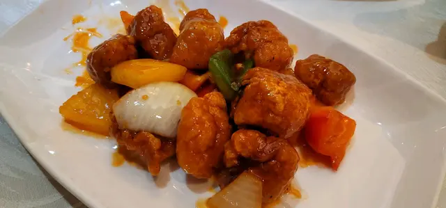 一早已經訂左位,因為得知佢嘅炸子雞需要提前預訂,未夠7點入座,已經差唔多滿座,睇嚟米芝蓮呢個牌頭係幾有影響力。除左炸子雞,我地仲叫左個例湯,例湯每日都會唔同款,即使例湯佢湯料都好足,另外仲有燉湯但都係要提前預訂,仲叫左聖子皇,頭抽煎焗大虎蝦,三蔬銀芽煎脆米,馳名鳳梨生炒骨,豆腐煲。炸子雞係真係名不虛傳,皮脆肉嫩,呢個值得預訂,而聖子皇都係當晚比較印象深刻嘅餐點,大蝦亦都煎得好入味。餐廳職員仲好熱情同埋好快手幫我地換碟執枱,值得一讚。…查看更多