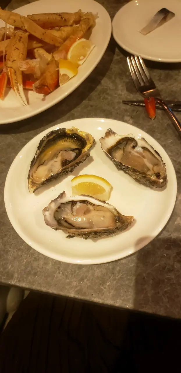 這間自助餐已經訂咗一個月。因為之前疫情停止咗自助晚餐。雖然自助餐款式唔多。😋不過總算海鮮都新鮮。生蠔都幾肥美又冇沙,每次每人只可以取三件。呢度仲有鴨肝食,不過鴨肝質素就麻麻。長腳蟹同埋凍螺都好味
