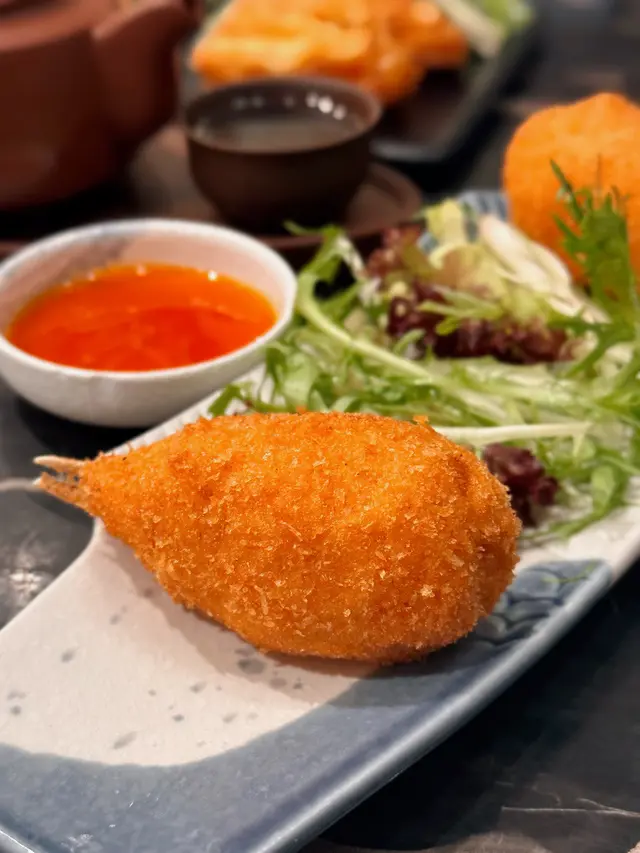 早排知道鳳城酒家係上環重開之後,都諗住帶屋企人黎,新店一改新面貌,加入左啲年輕元素,除左有bar枱之外,仲有鑽石黑嘅VIP房,裝修甚有氣派,可以係入面唱K,仲有得玩電動麻將🀄️除左傳統酒樓圓枱,兩個人黎仲有卡位可以揀🥢茶介🍵 $13/位白桃烏龍、荔枝紅茶都有好多款特色茶可以揀,茶味清香,有淡淡白桃同荔枝味,平時少見🥢紫砂茶壺燉螺頭湯🫖 $88/位燉湯用一個茶壺裝住,夠熱又足料,火侯剛好,味道清甜,滋陰補腎🥢鍋貼大明蝦🍤 $26/隻 2隻起雖然叫鍋貼,但其實就係蝦多士,仲要係用大蝦整成,同件多士一樣咁大隻,厚肉😳炸得金黃香脆🥢百花釀蟹鉗🦀 $88/件 2件起蟹鉗兩隻都脹卜卜,入面炸到好熱,食嘅時候要小心辣親。口感彈牙,仲有絲絲蟹肉,推介必點😋🥢招牌炸子雞🐓 $188/半隻外皮酥脆,雞肉肥美嫩滑,有肉汁,半隻已經好大份,果然係招牌菜式🥢順德桂魚卷🐟$338魚肉鮮嫩滑溜,入面包住火腿絲同松子仁,啖啖滋味,仲有部分魚件蘸粉炸過,加埋大蔥同西蘭花🥦濃郁惹味🥢蛋白杏仁茶🥛 $38杏仁茶勁滑!味道濃郁,美白養顏,仲配左一塊香脆嘅合桃酥,幾有誠意🥢雪燕楊枝甘露🥭$38香甜芒果肉加上西柚肉,酸酸甜甜,味道正宗…查看更多